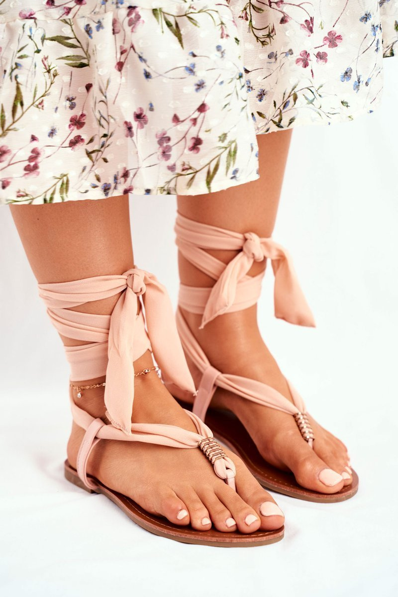 Sandałki Damskie Japonki Wiązane Beżowe Derryl