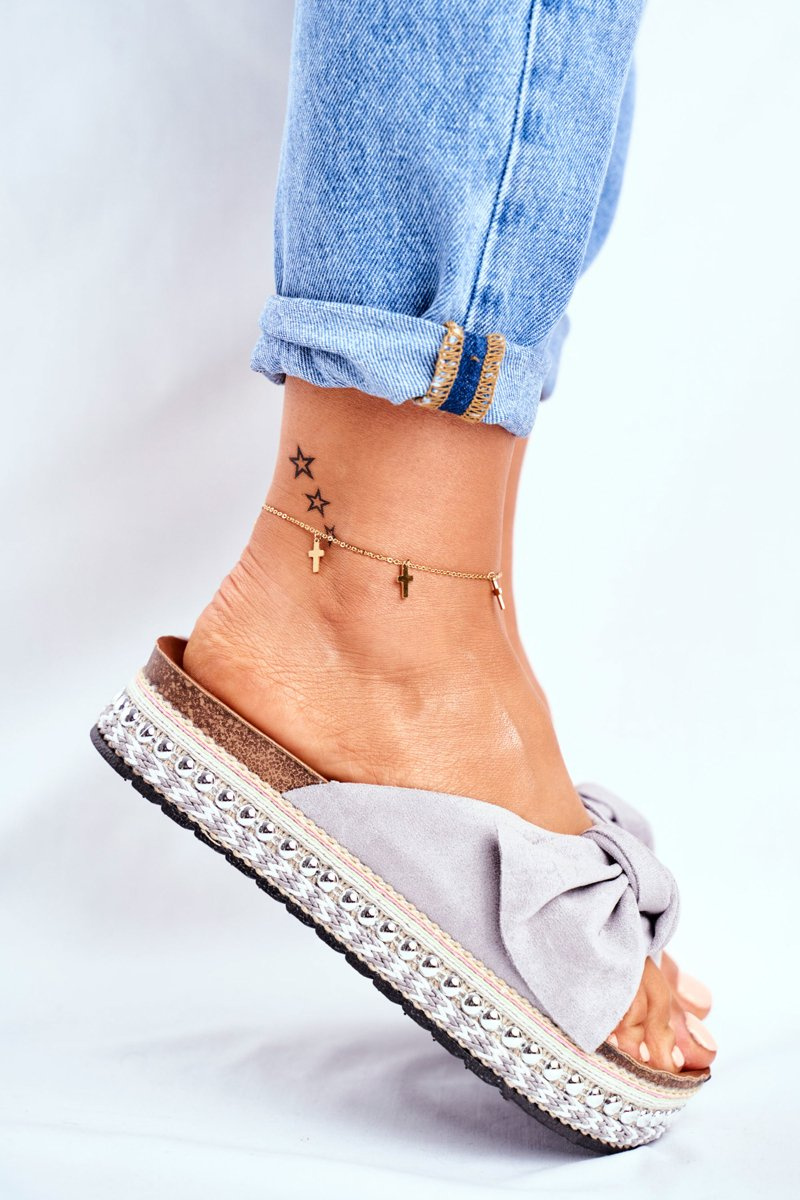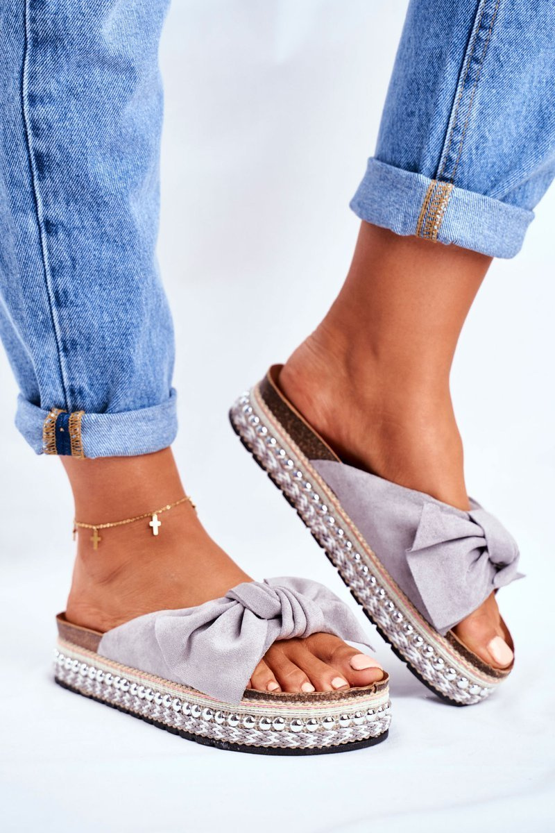 Damskie Klapki Wysokie Szare Mortigo
