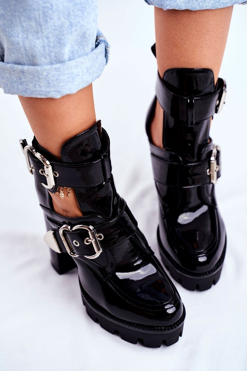 Damskie Botki Na Słupku Lakierowane Czarne Rock Time!