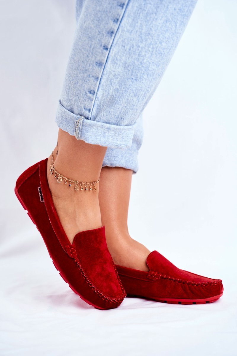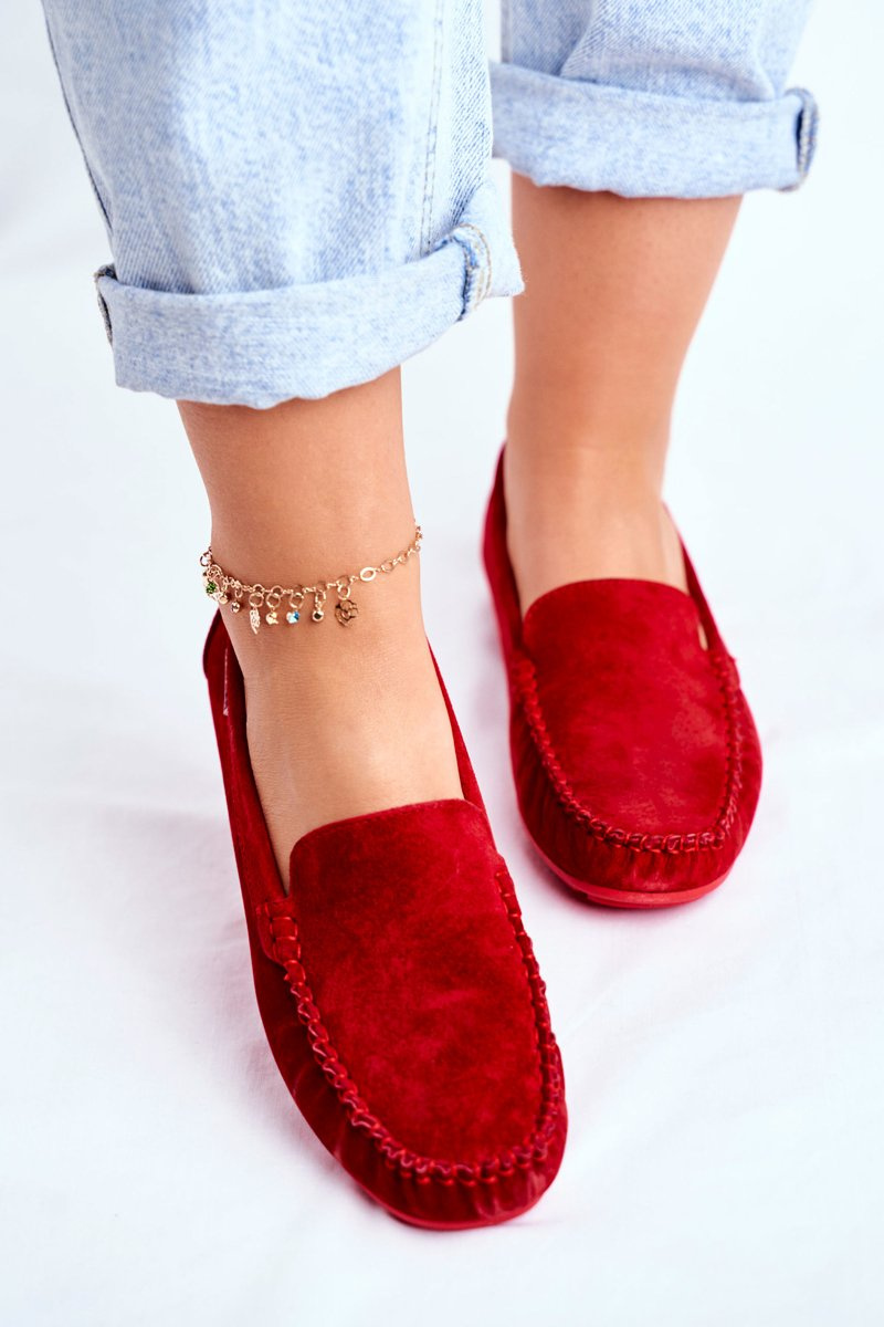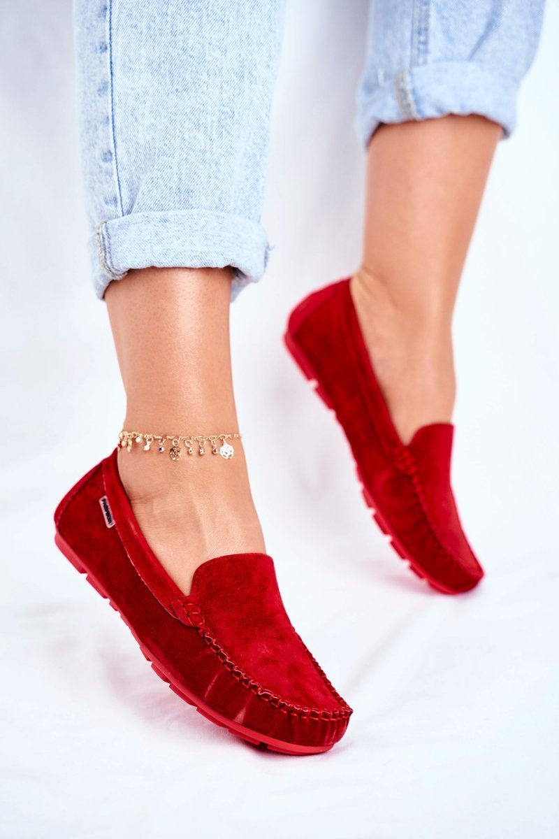 Mokasyny Damskie Skóra Zamsz Czerwone Papito