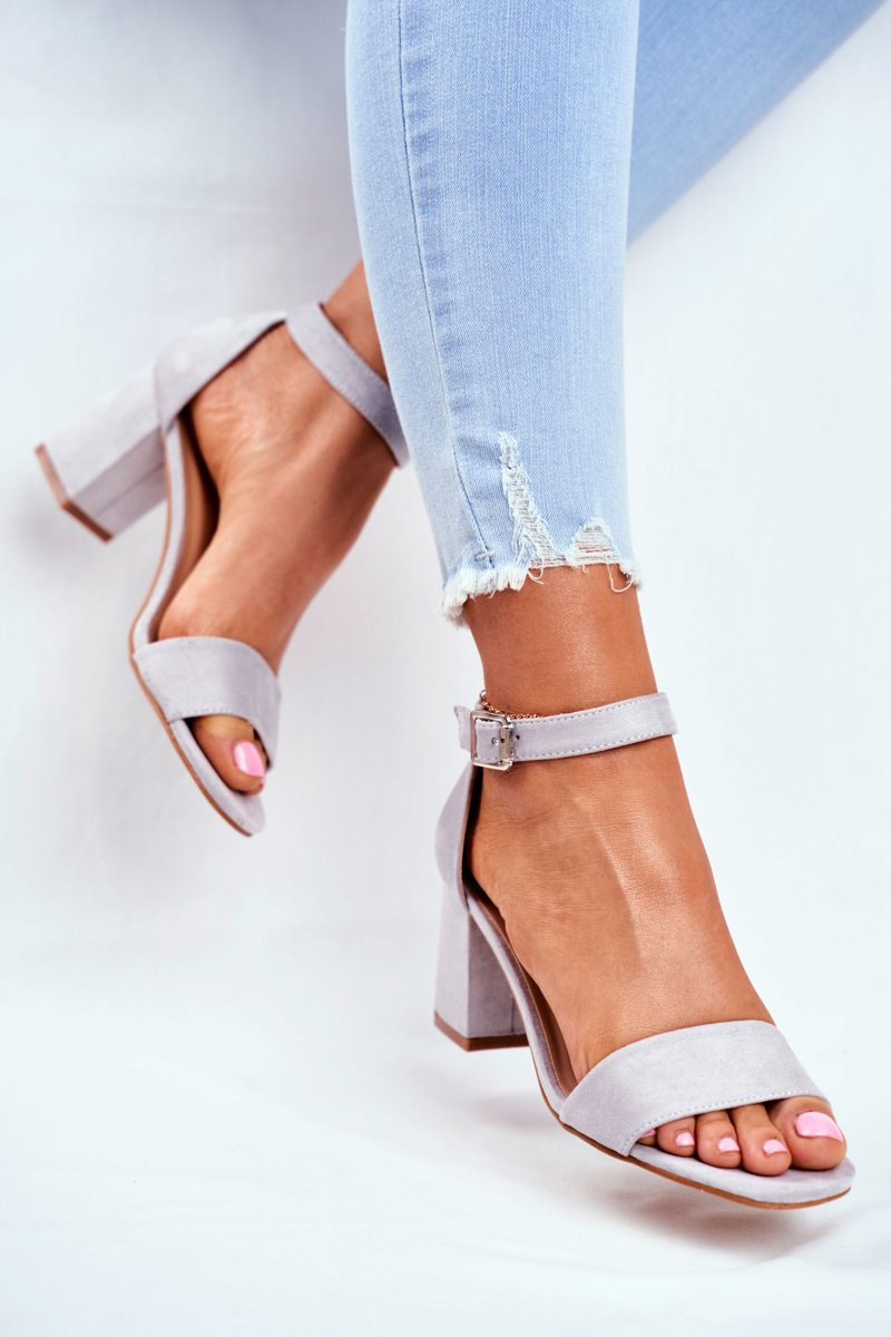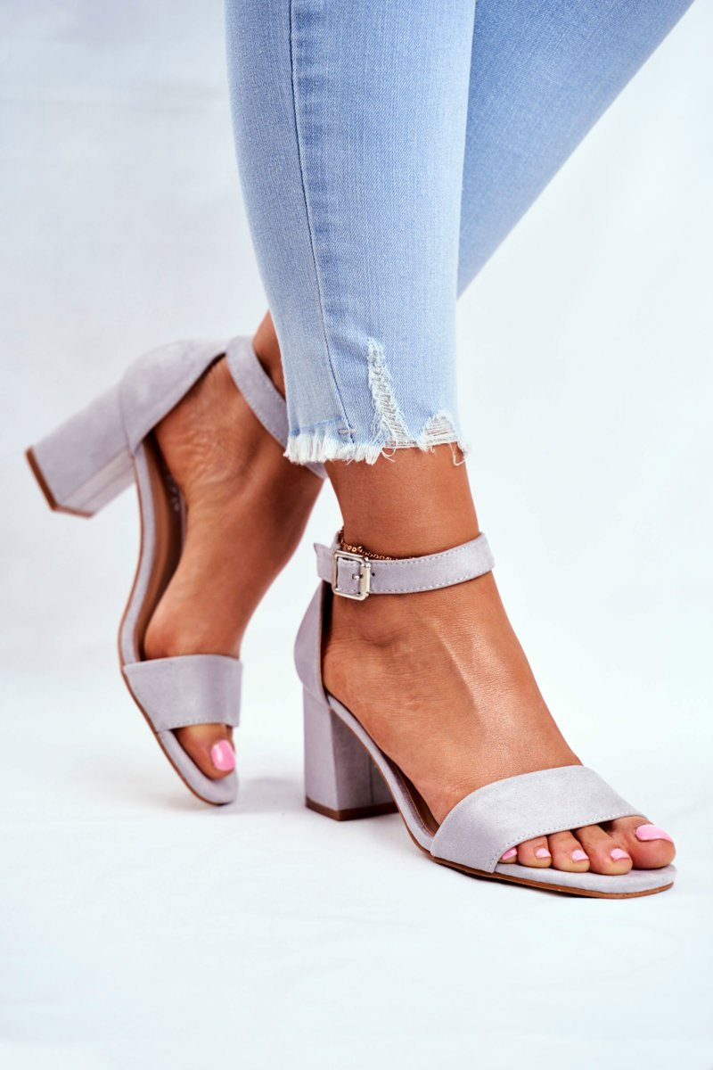 Zamszowe Sandały Na Słupku Vinceza 20-17058 Szare