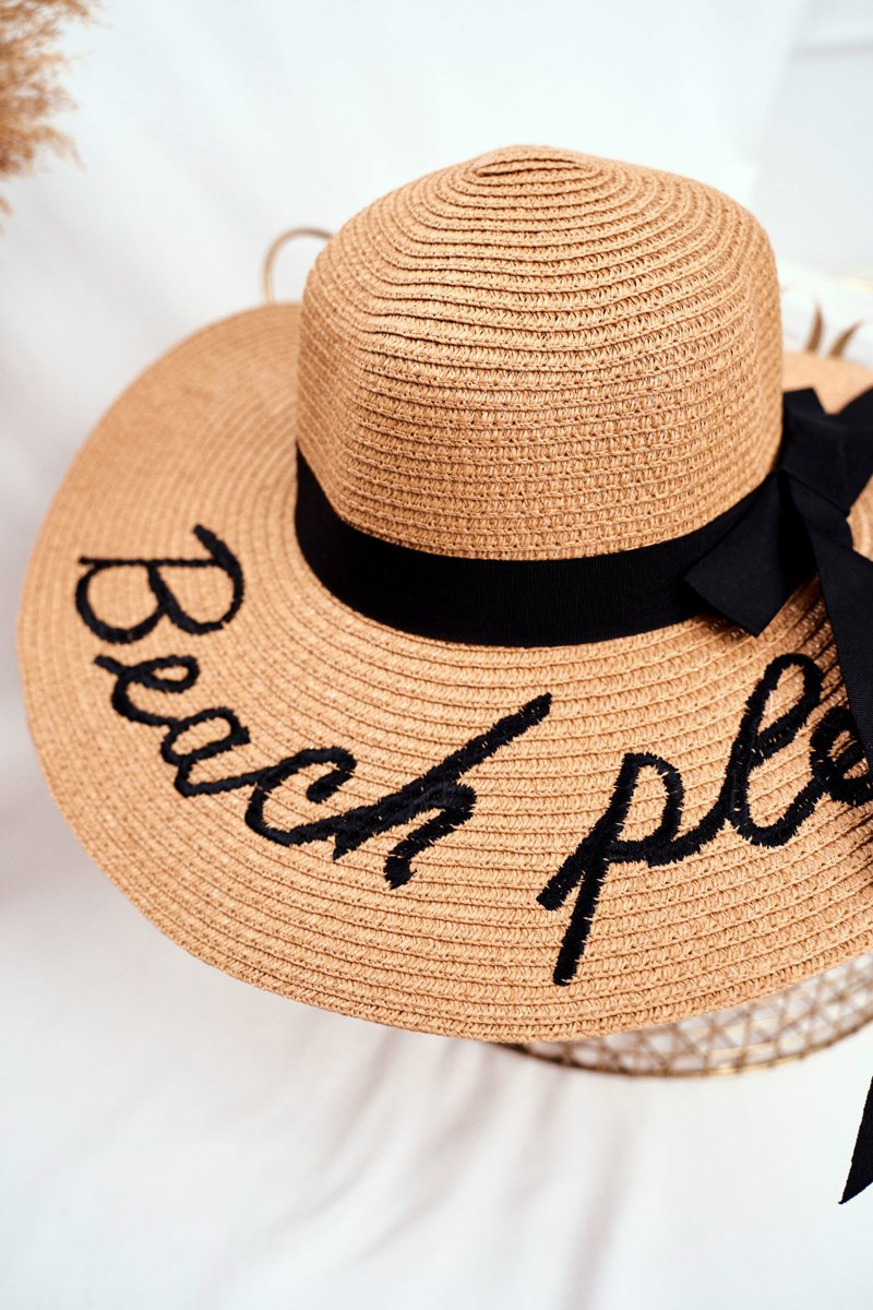 Damski Kapelusz 100% Papier Camel Duże Rondo Beach Please
