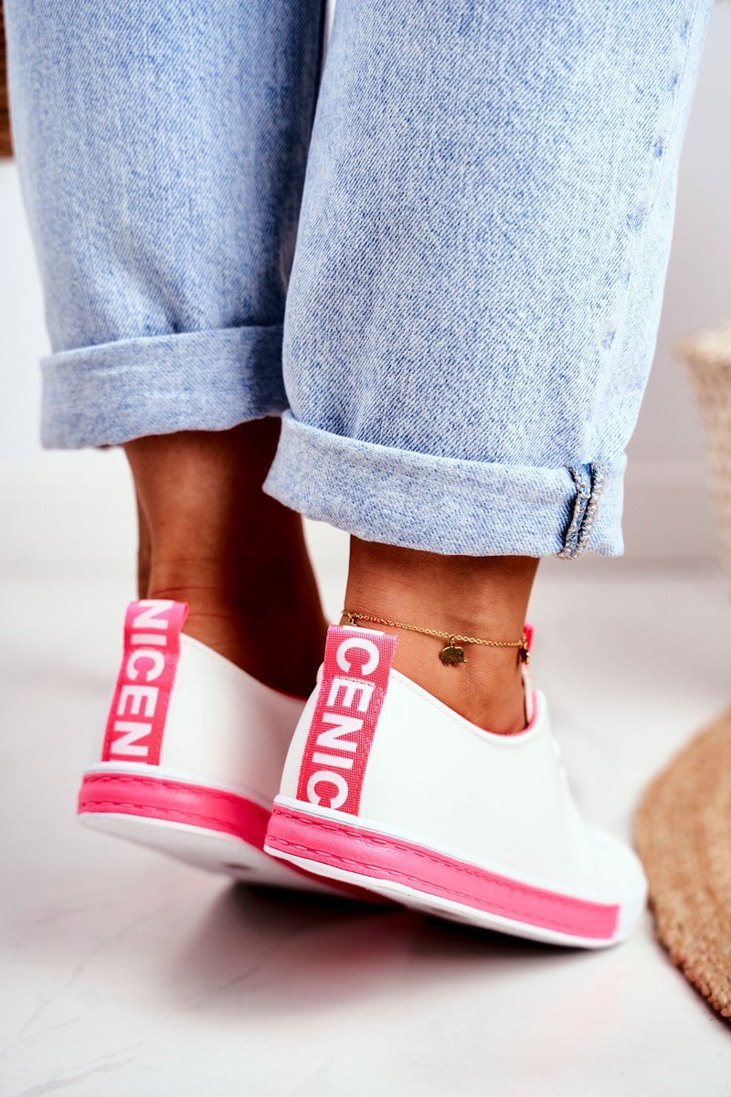 Trampki Damskie Klasyczne Biało-Neonowo Różowe Ville
