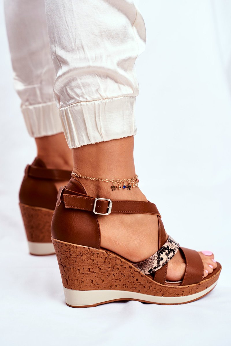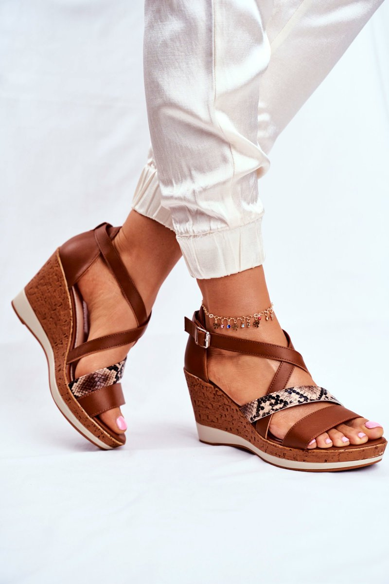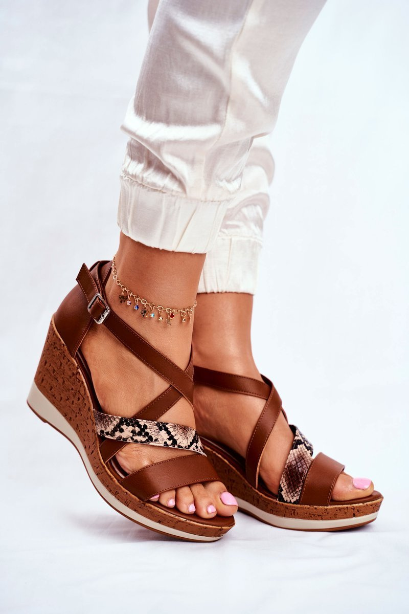 Sandały Damskie Na Koturnie Sergio Leone Brązowe SK309