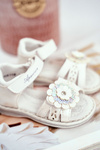 Sandały Dziecięce na Rzepy Kwiatuszek Białe Mino