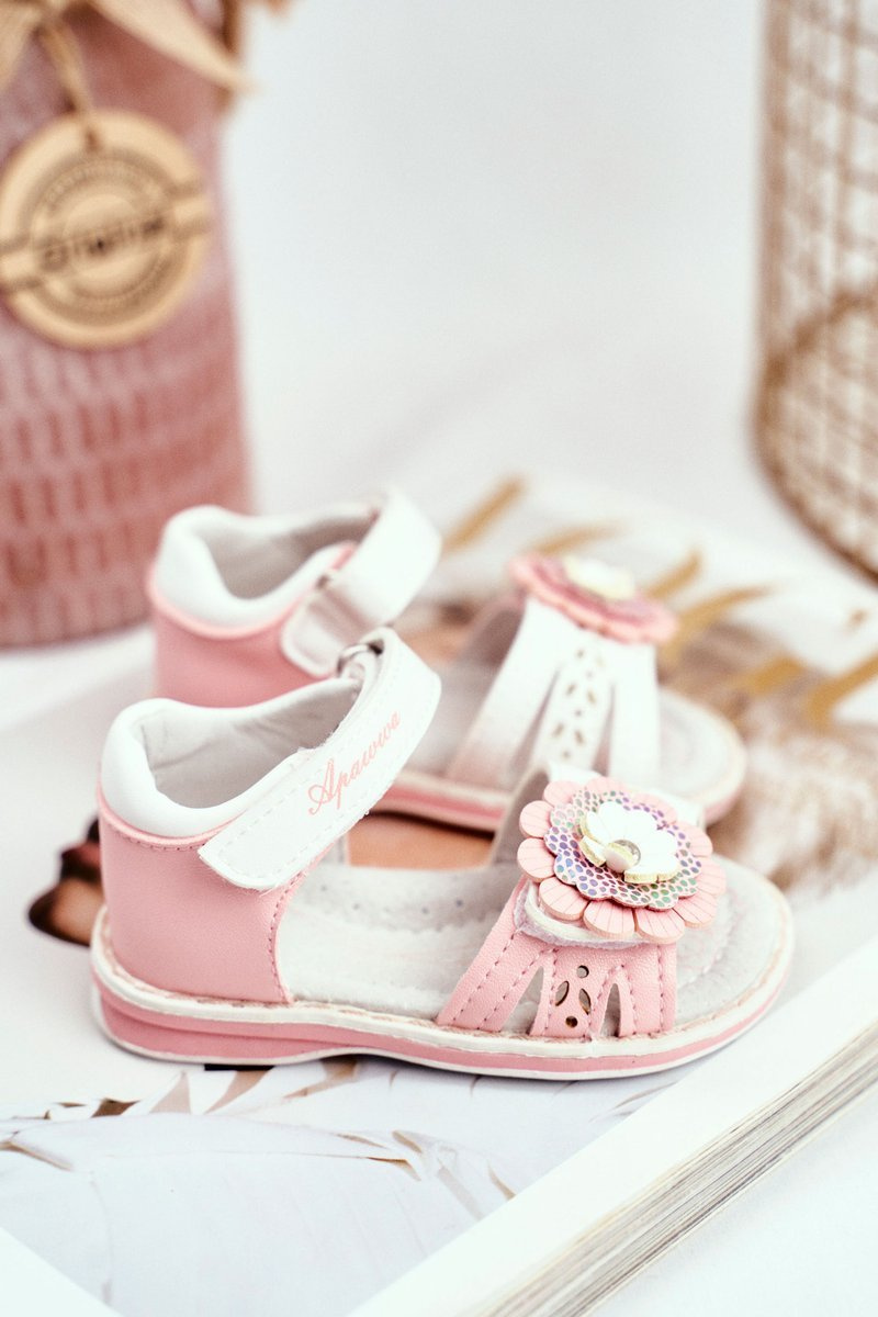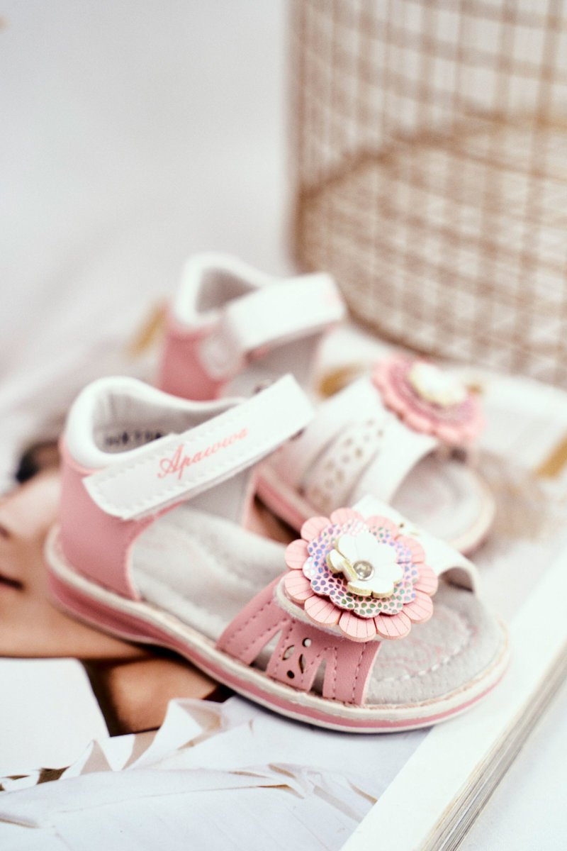 Sandały Dziecięce na Rzepy Kwiatuszek Różowe Mino