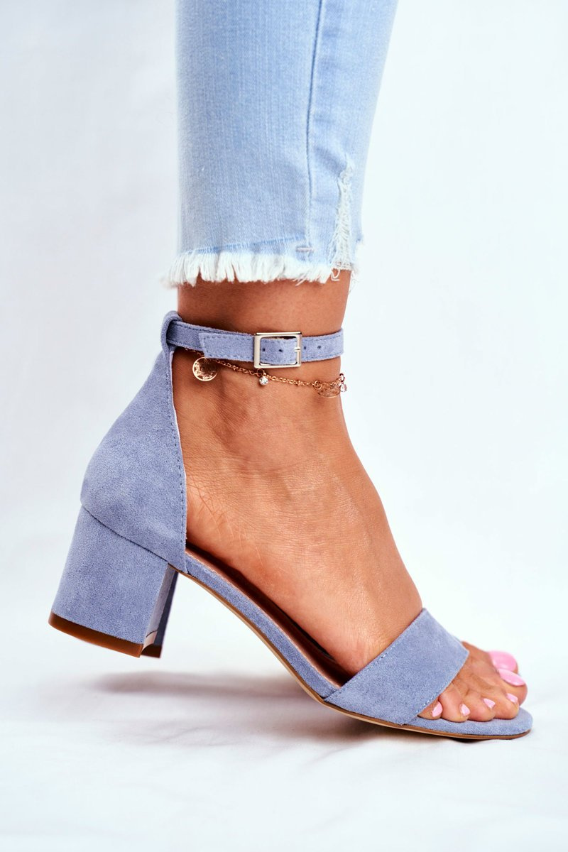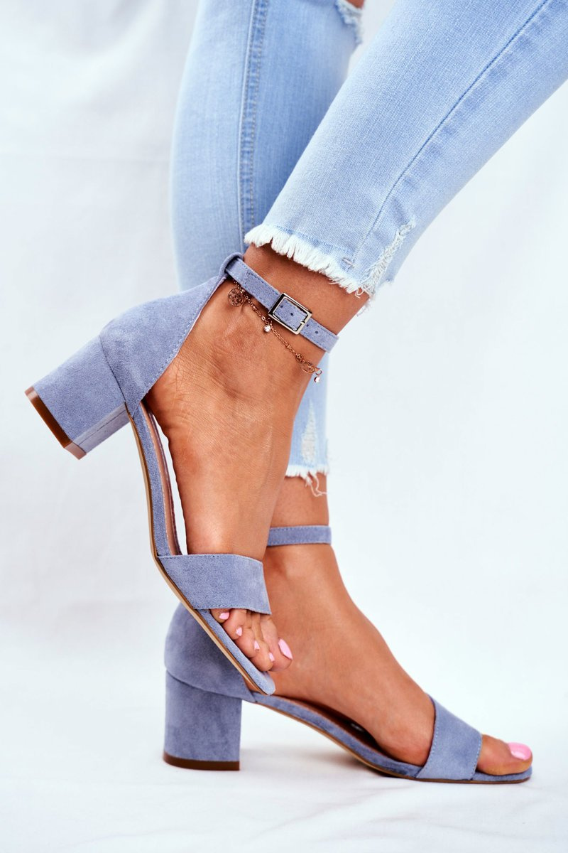 Zamszowe Sandały Na Słupku Sergio Leone SK839 Jasnoniebieskie