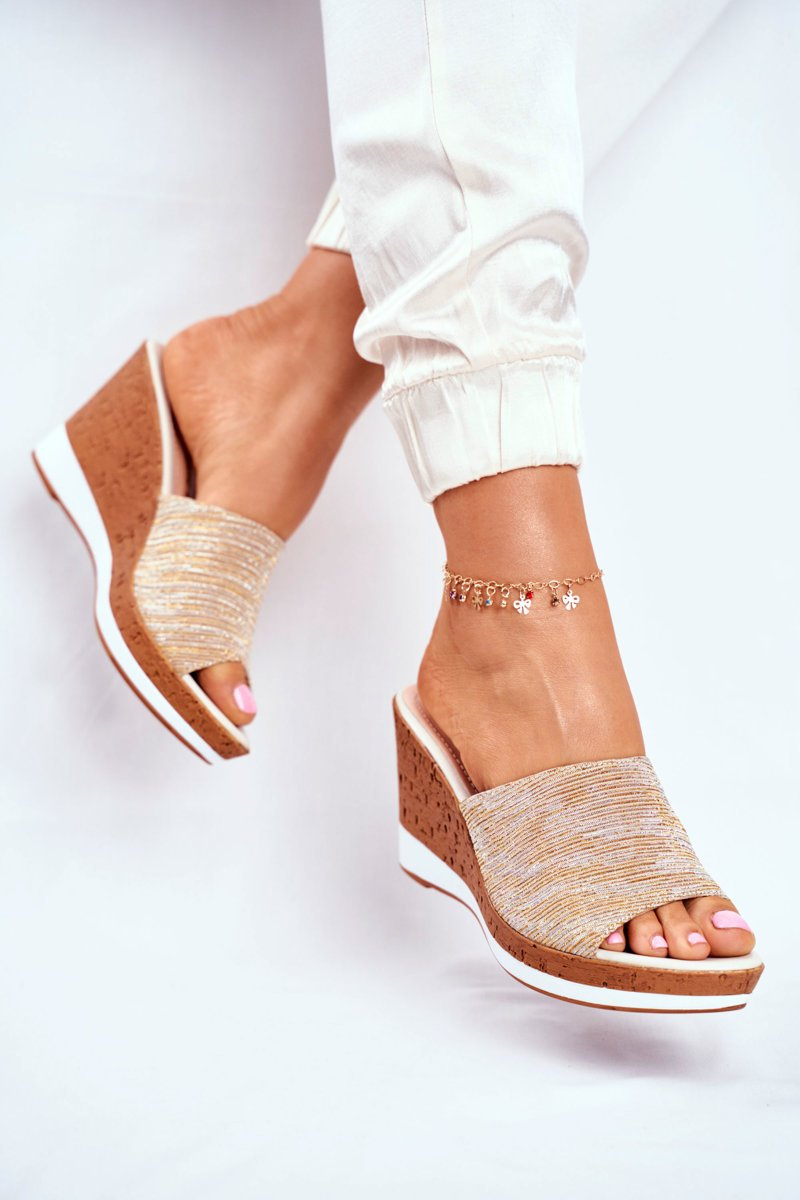 Klapki Damskie Na Koturnie Sergio Leone Beżowe SK320