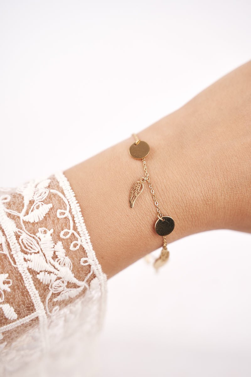 Damska Bransoletka Celebrytka Złota 7 Zawieszek Skrzydła Aurora
