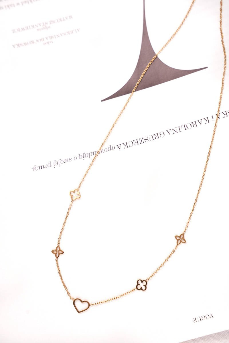 Damski Złoty Naszyjnik Łańcuszek Koniczynka Serce Sweetie