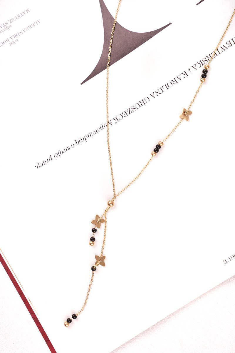 Damski Złoty Naszyjnik Łańcuszek Kwiatki Czarne Kuleczki Carla