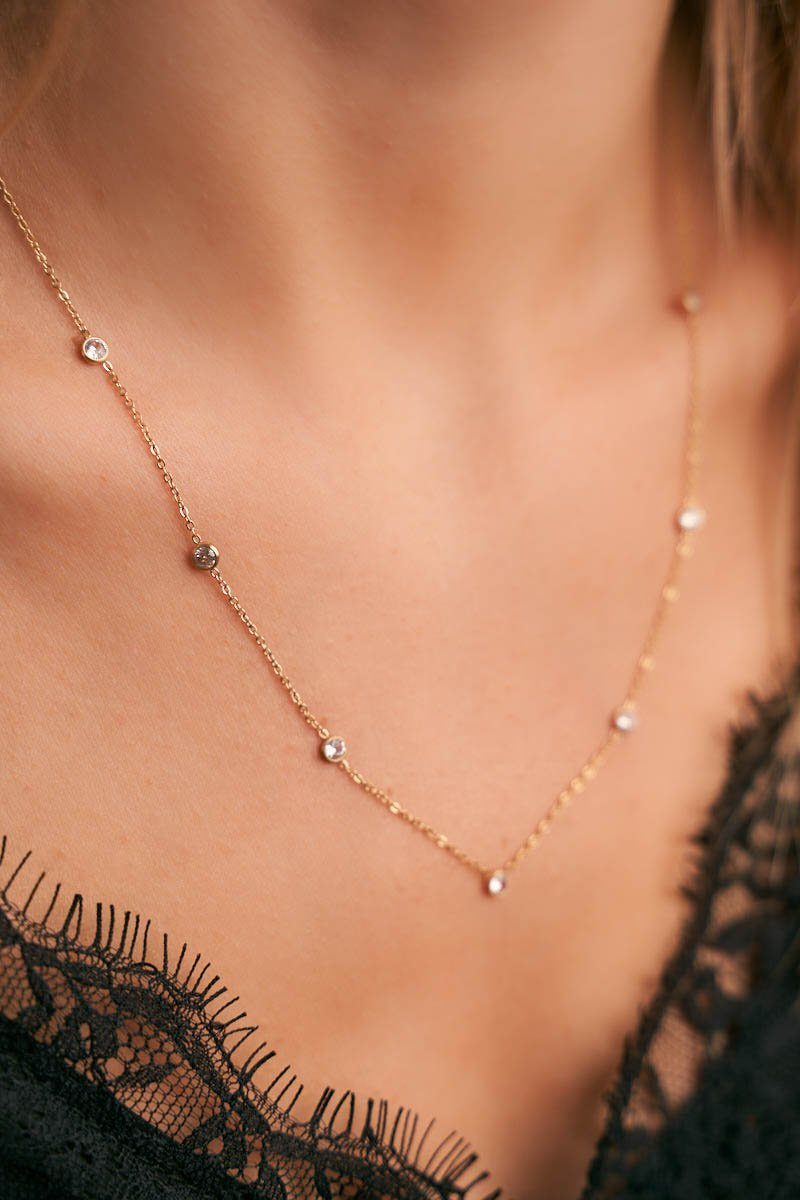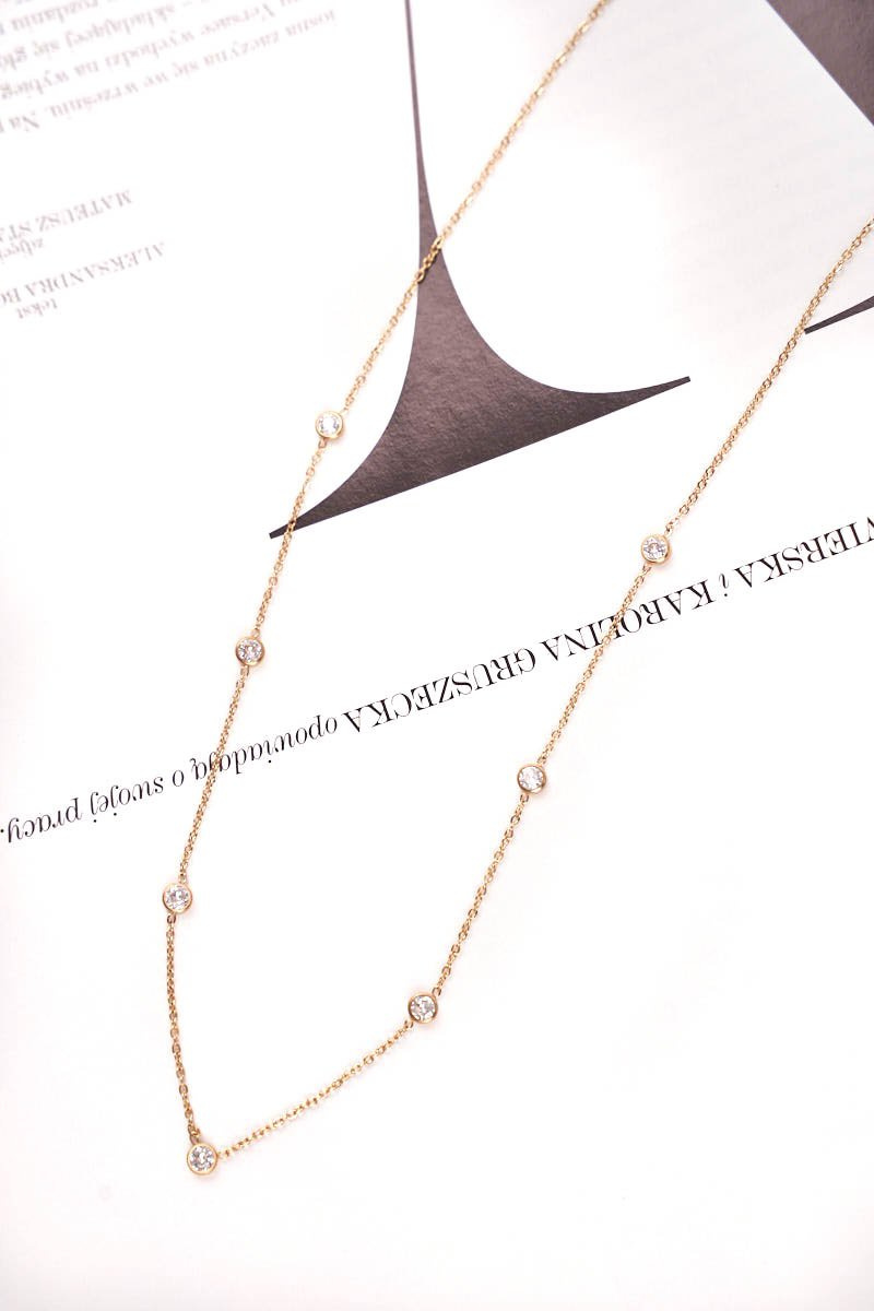 Damski Złoty Naszyjnik Łańcuszek Celebrytka Białe Cyrkonie Elvira