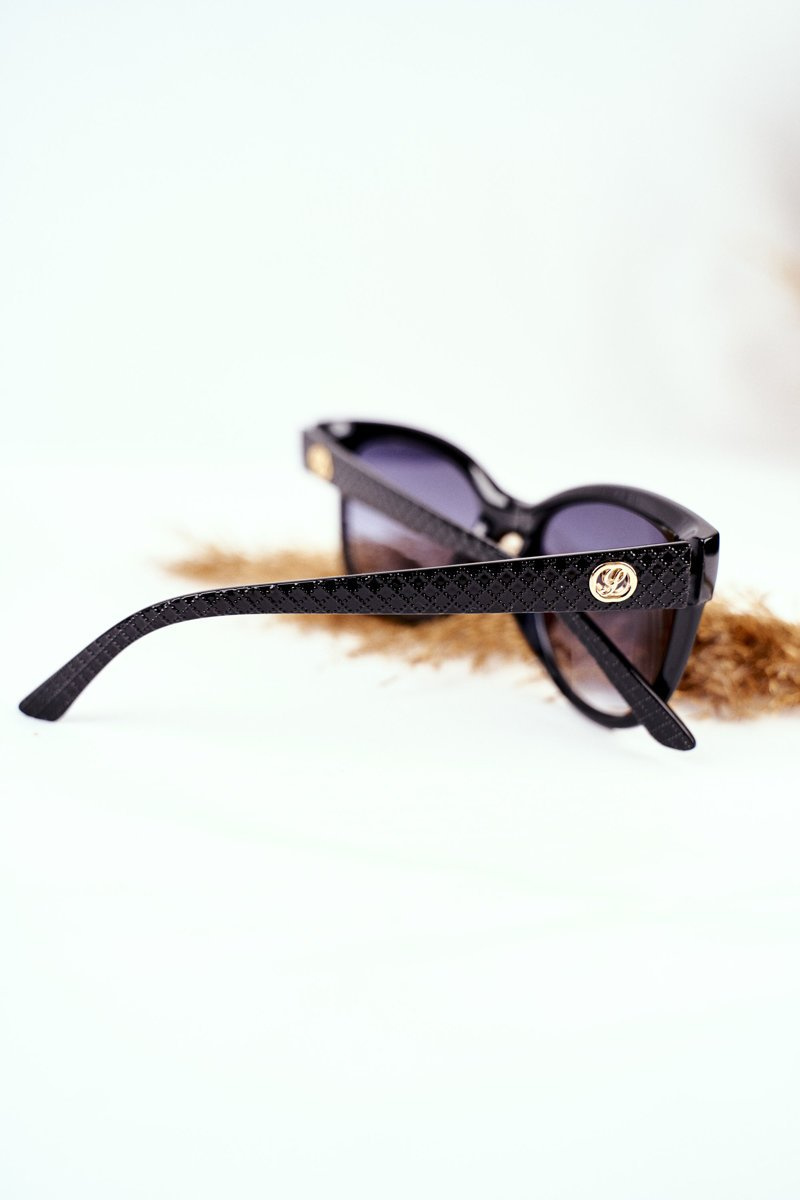 Okulary posiadają szkła z pięknym gradientem czerni oraz modne ozdoby na zausznikach widoczne na zdjęciach.