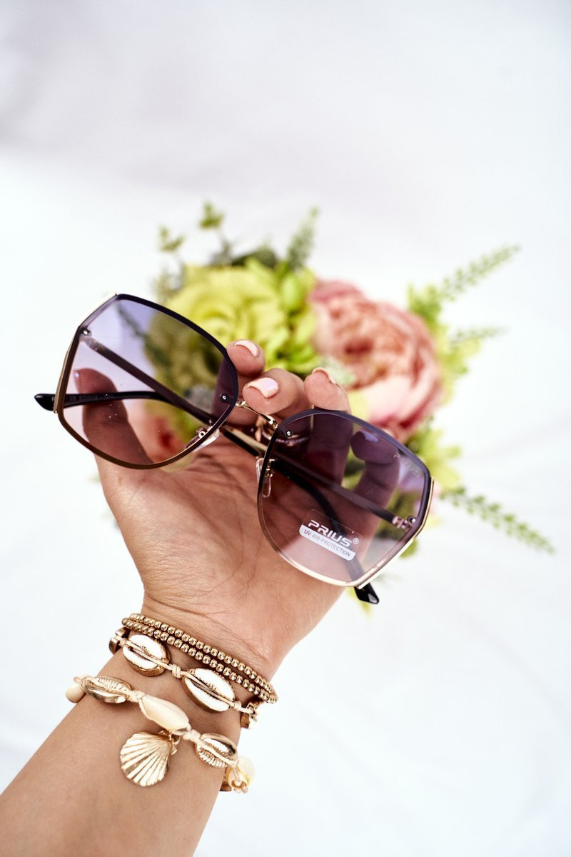 Okulary Przeciwsłoneczne Prius PRE-38 Złote Czarne Gradient Brokat