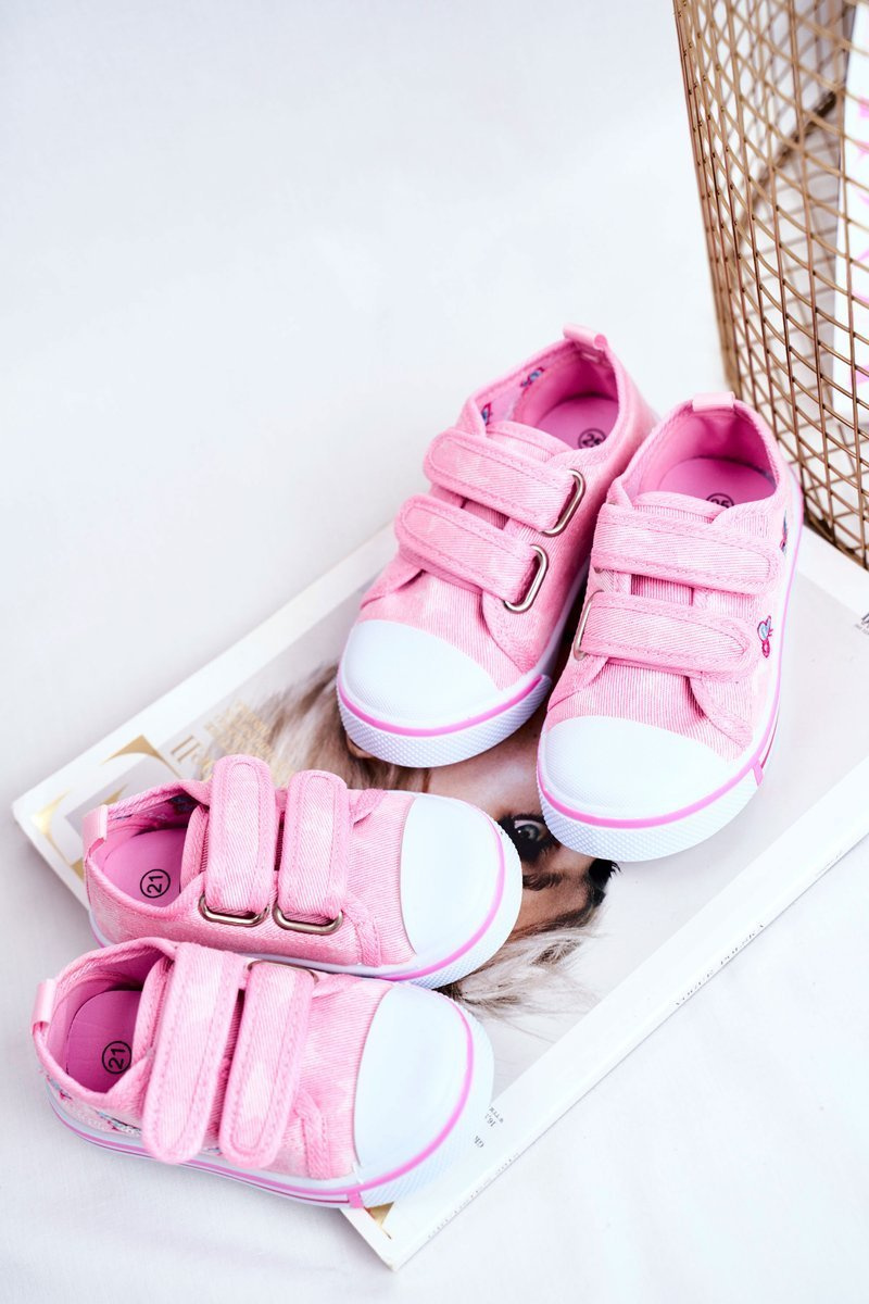 Tenisówki Dziecięce na Rzepy Różowe Junalo