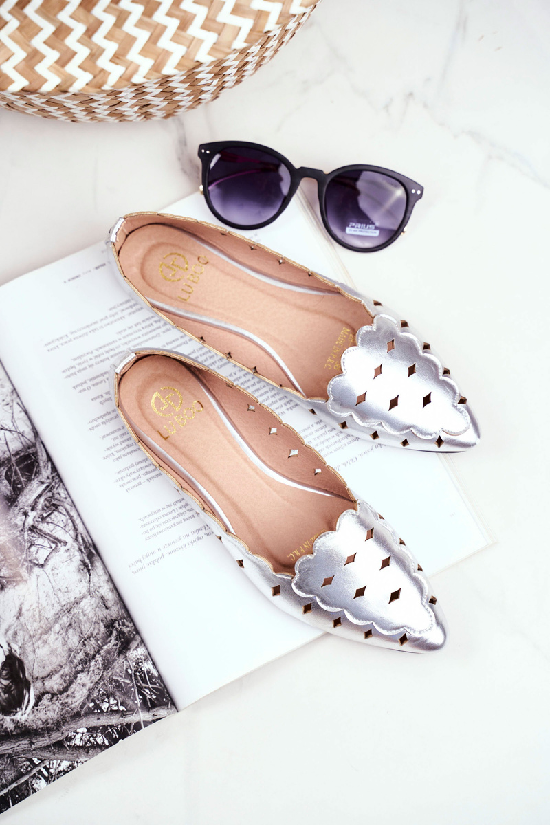 Lu Boo Damskie Baleriny Srebrne Metaliczne Dianna