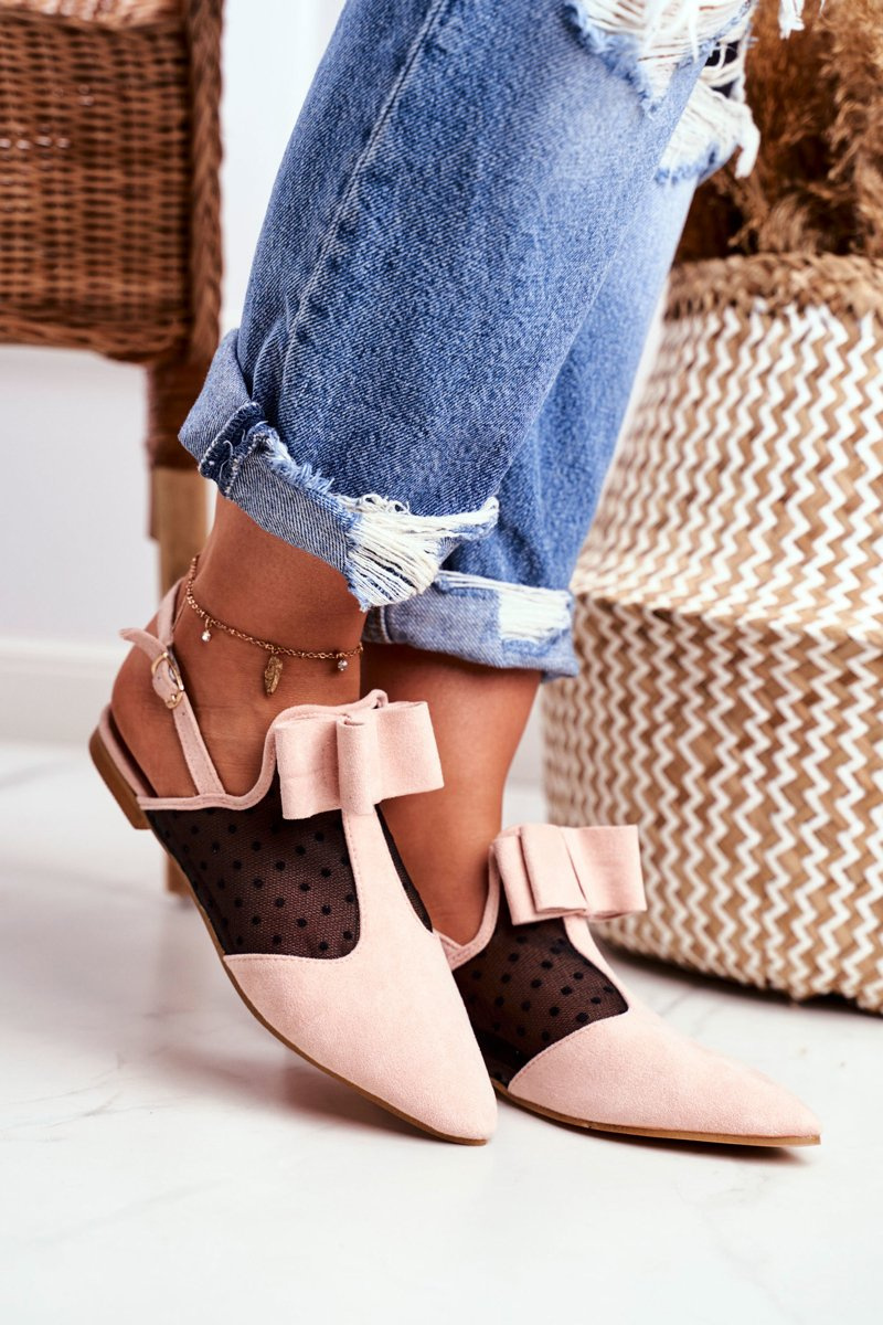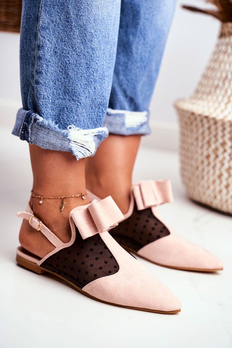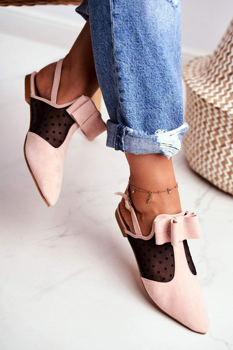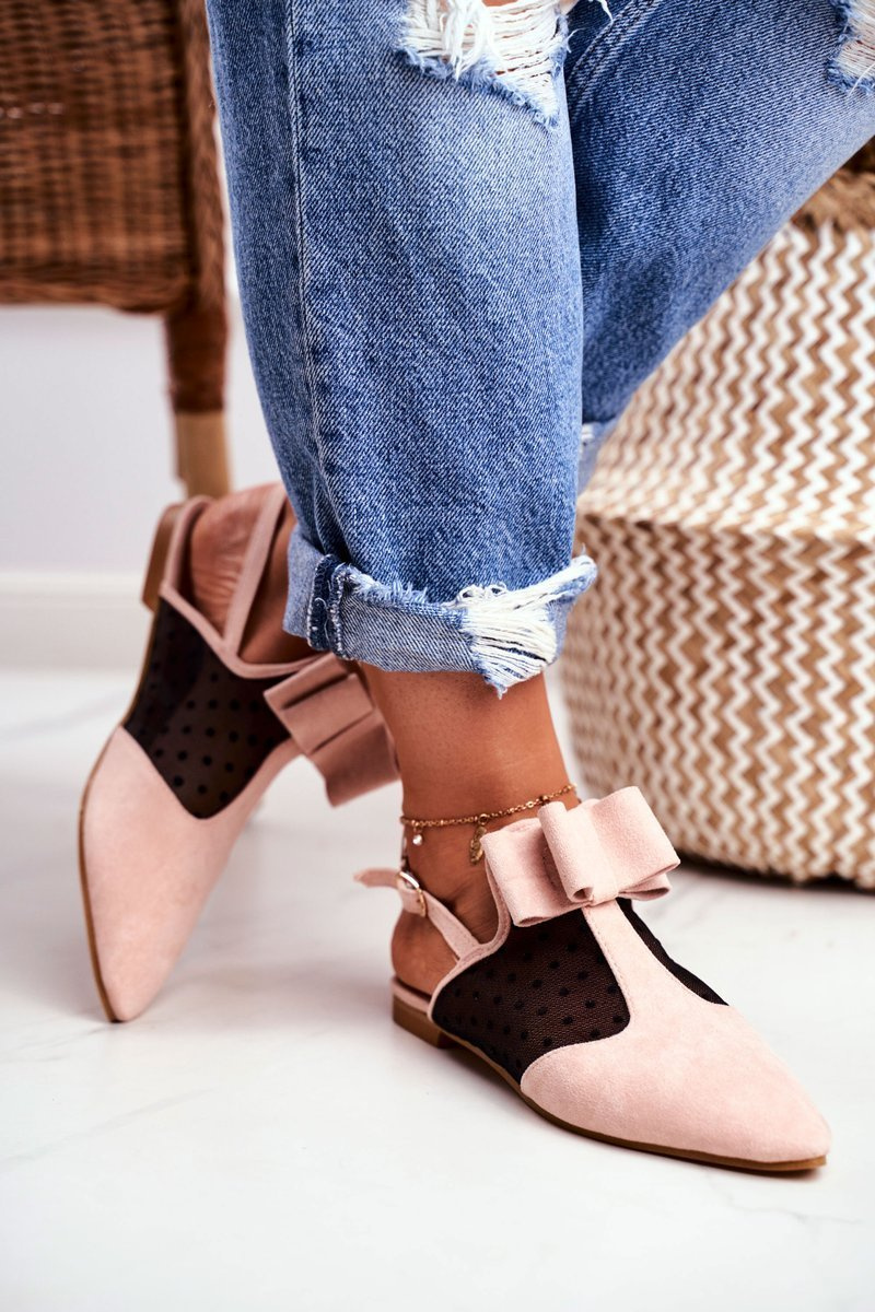 Lu Boo Damskie Baleriny Kokardki Mule Różowe Domino