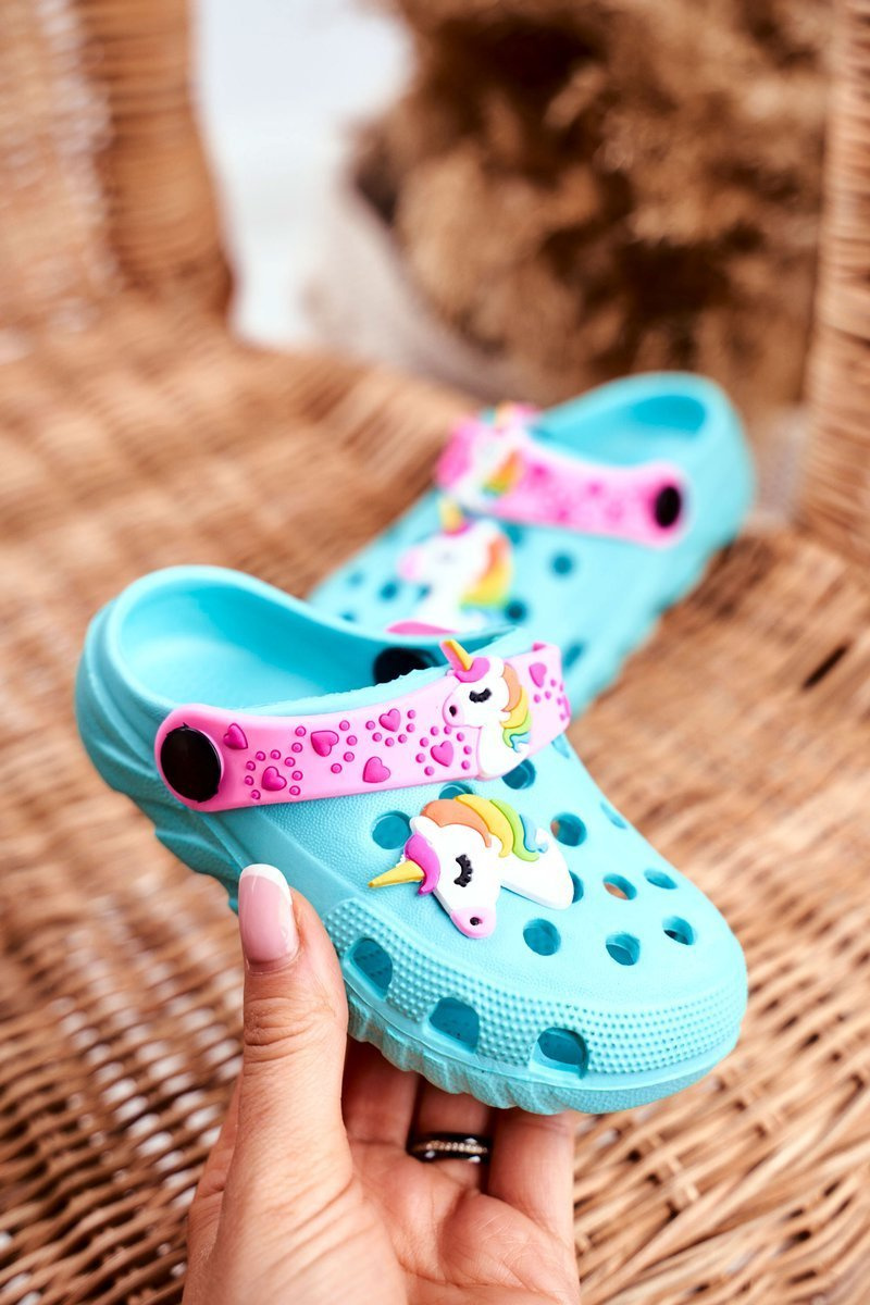 Klapki Dziecięce Piankowe Kroksy Niebieskie Jednorożec Lily