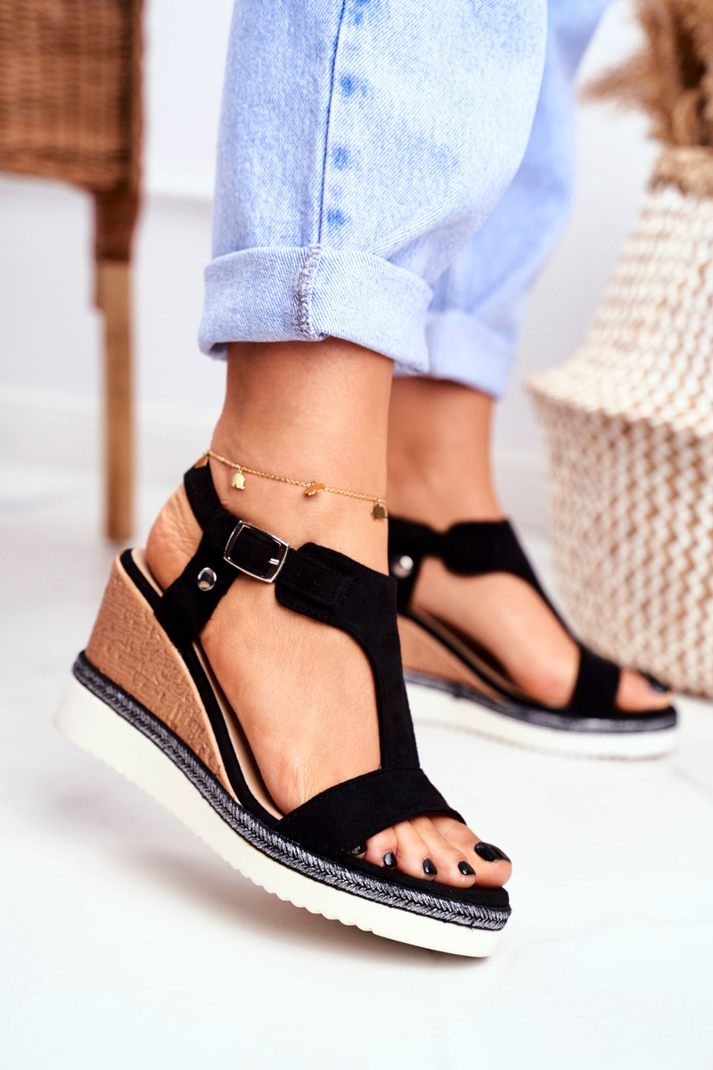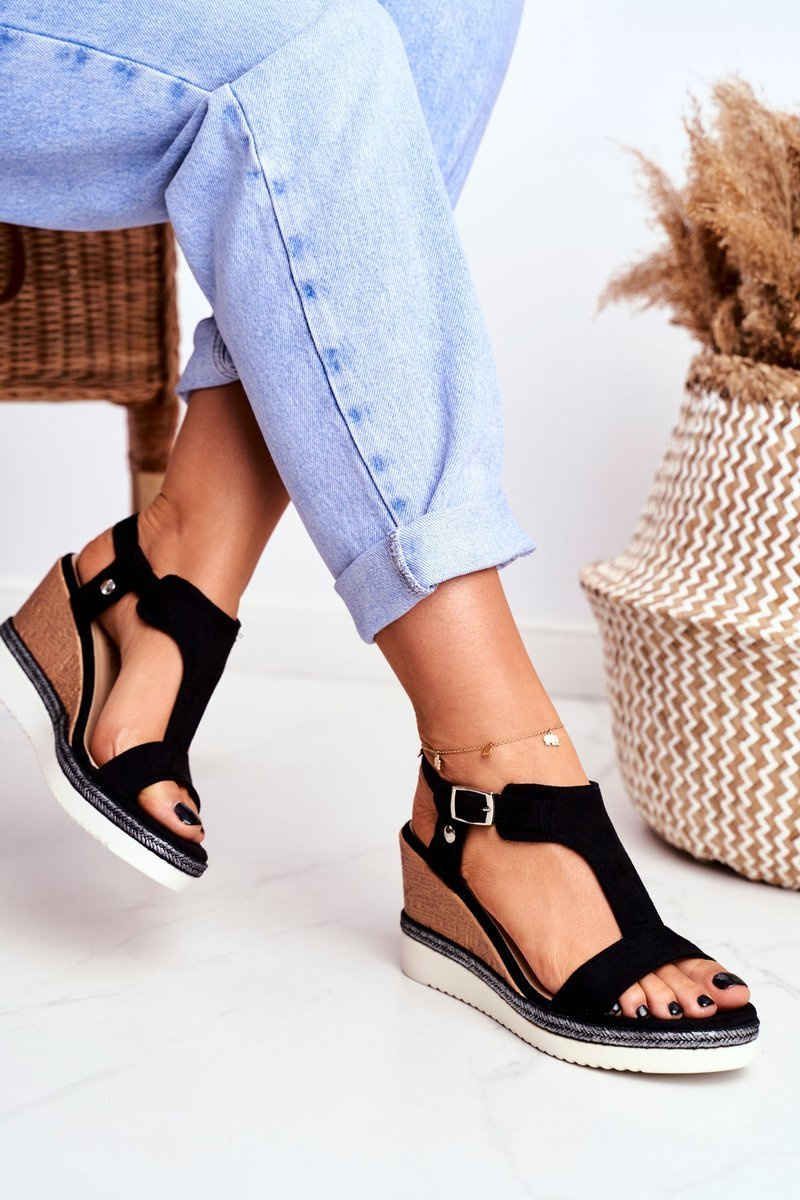 Sandałki idealne na lato! Wysokie obuwie mimo 9-centymetrowego obcasa w postaci koturna jest niezwykle wygodne i stabilne, a przy tym niesamowicie modne i wyróżniające się. Miękka wkładka, regulacja wokół kostki w postaci paska ze sprzączką. Koturn idealnie podkreśli Twoją sylwetkę. Przy wyborze rozmiaru prosimy sugerować się tabelą rozmiarów.