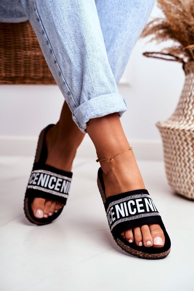 Klapki Na Korku Z Cyrkoniami Czarne Be Nice