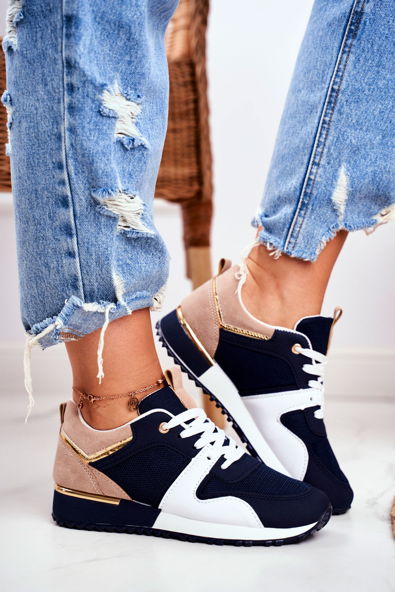 Sportowe Damskie Buty Granatowe Złote Elementy Clementine