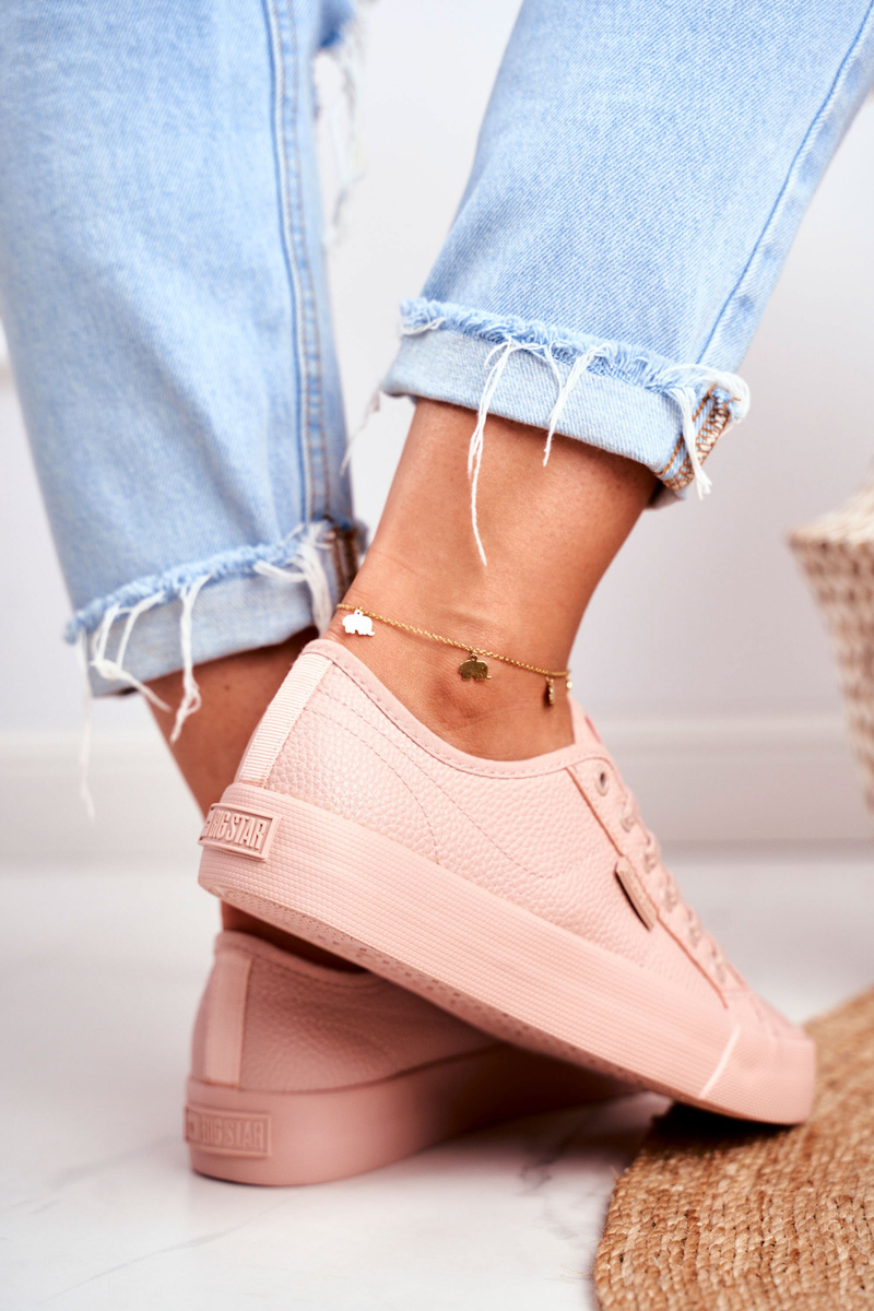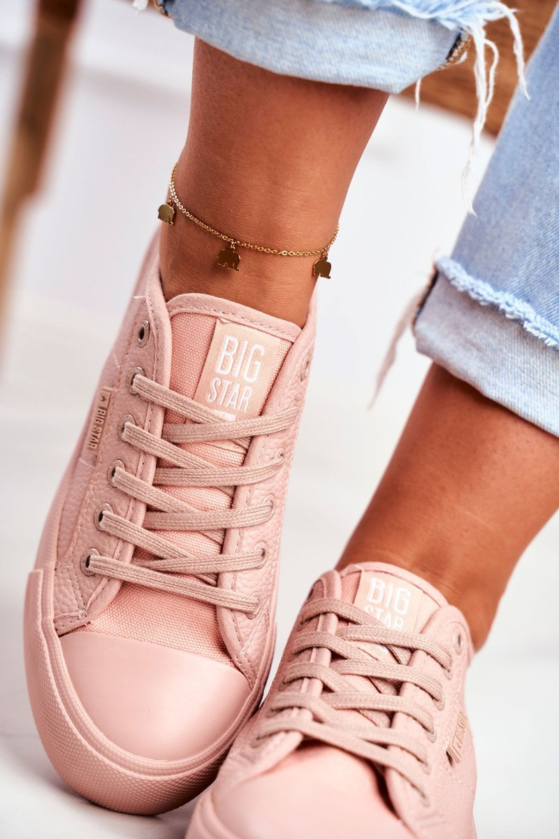 Ponadczasowe sznurowane trampki Big Star! Wierzchnia część buta została wykonana ze skóry ekologicznej, którą bardzo łatwo utrzymać w czystości. Wyjątek stanowi język, który wraz z wewnętrzną częścią buta wykonano z wysokiej jakości tkaniny. Antypoślizgowa podeszwa gwarantuje komfort na każdej nawierzchni. Trampki doskonale sprawdzą się zarówno podczas wyjścia do pracy, jak i w trakcie wycieczki za miasto. Klasyczny wzór połączony z niespotykaną dotąd wygodą to doskonały przepis na praktyczne i oryginalne buty. Trampki zostały ozdobione po boku gumowym logiem marki Big Star. Przy wyborze rozmiaru prosimy sugerować się tabelą rozmiarów.