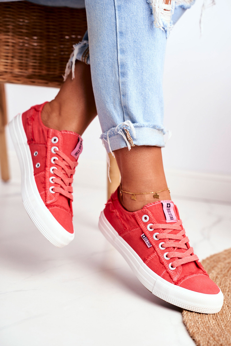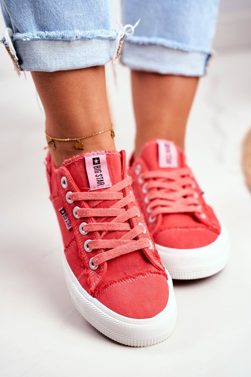 Ponadczasowe sznurowane trampki Big Star! Zarówno wierzchnia, jak i wewnętrzna część buta została wykonana z wysokiej jakości tkaniny, którą dodatkowo delikatnie postarzono. Dzięki temu zabiegowi buty zyskały nieco więcej charakteru i na pewno zostaną zauważone. Antypoślizgowa podeszwa gwarantuje komfort na każdej nawierzchni. Trampki doskonale sprawdzą się w wielu codziennych sytuacjach. Klasyczny wzór połączony z niespotykaną dotąd wygodą to doskonały przepis na praktyczne i oryginalne buty. Trampki zostały ozdobione po boku logiem marki Big Star, które można znaleźć również za piętą. Przy wyborze rozmiaru prosimy sugerować się tabelą rozmiarów.