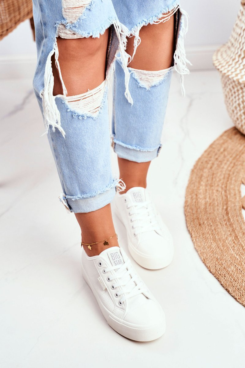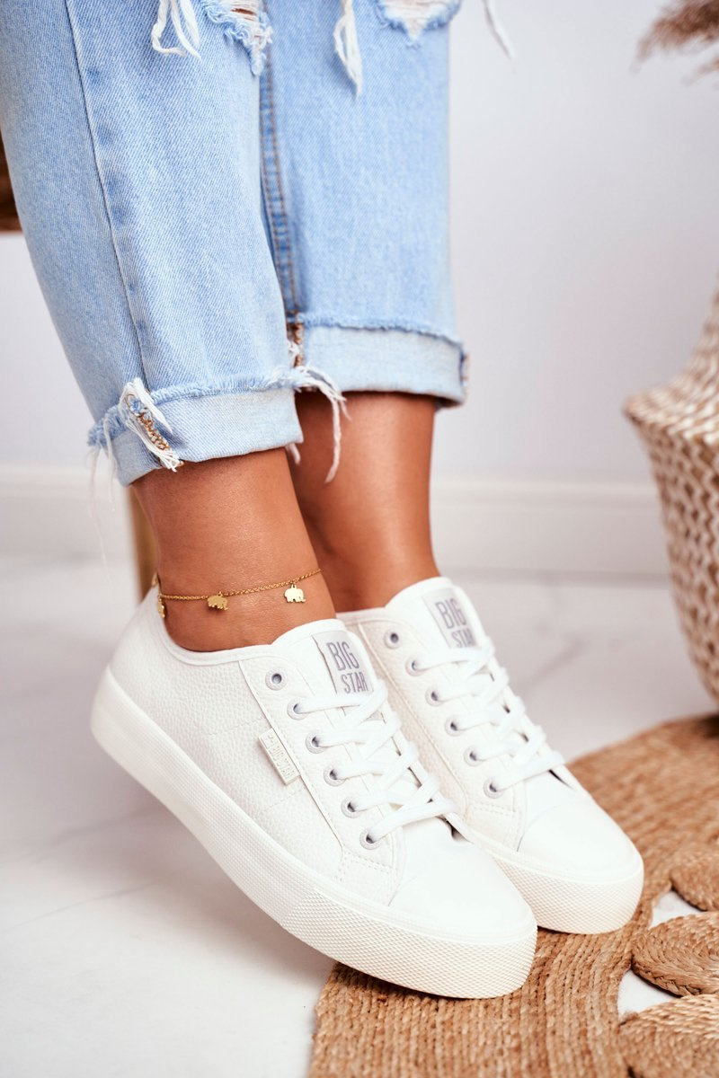 Skórzane Trampki Damskie Big Star Białe GG274098
