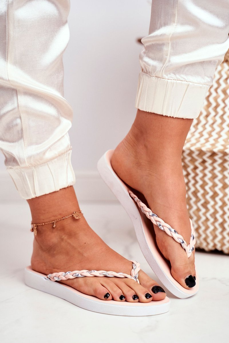 Klapki Damskie Japonki Pleciony Pasek Różowe Peggie