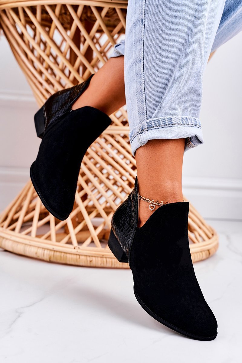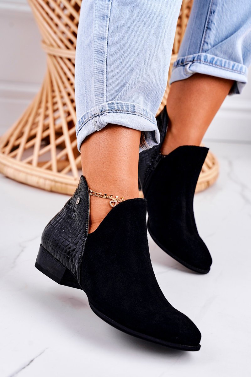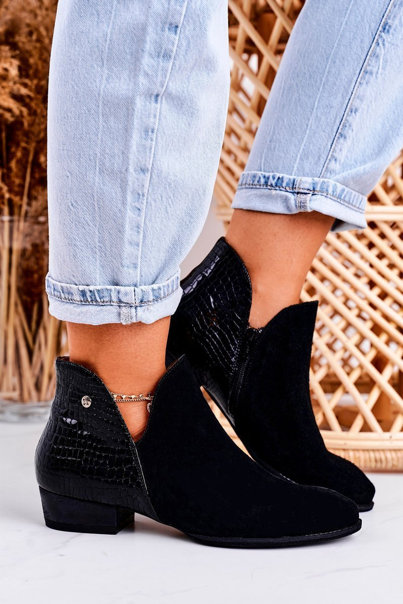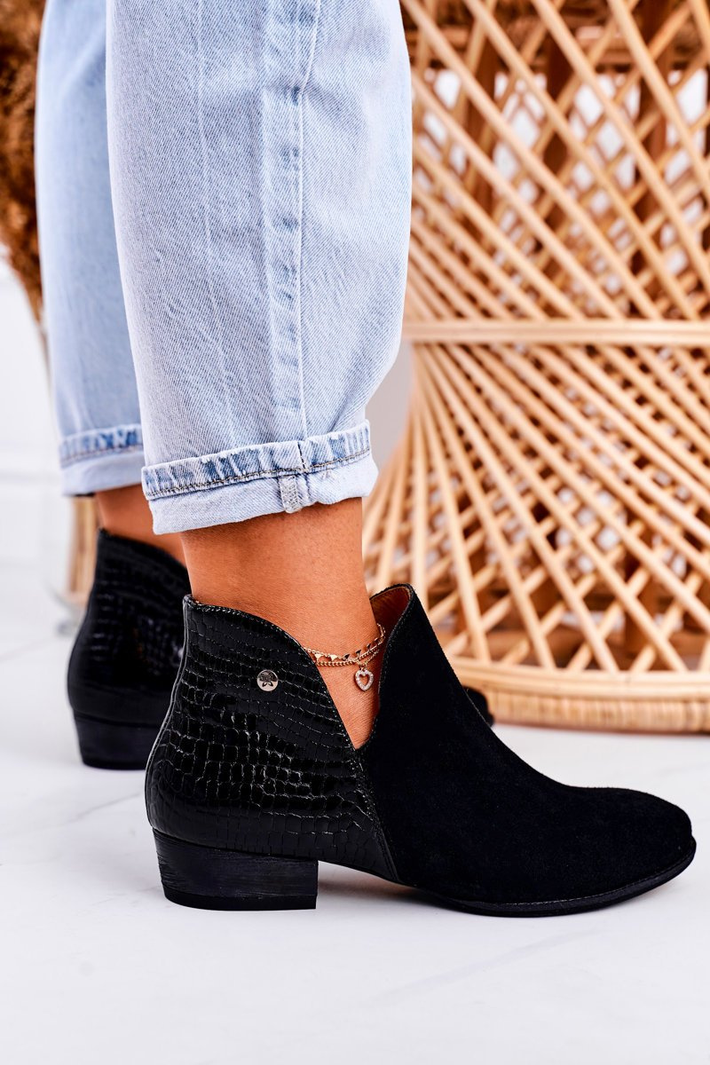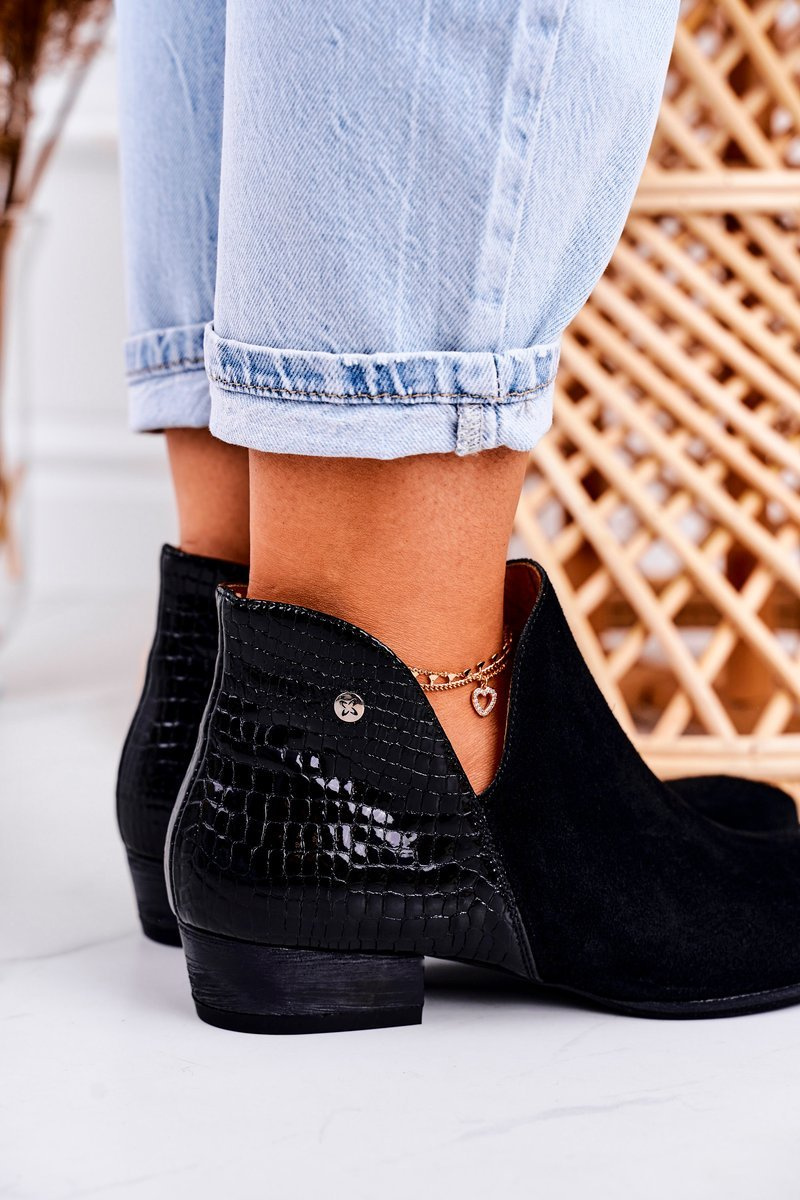 Damskie Skórzane Botki Maciejka Lakierowane Czarne Wzór Zwierzęcy 04091-72