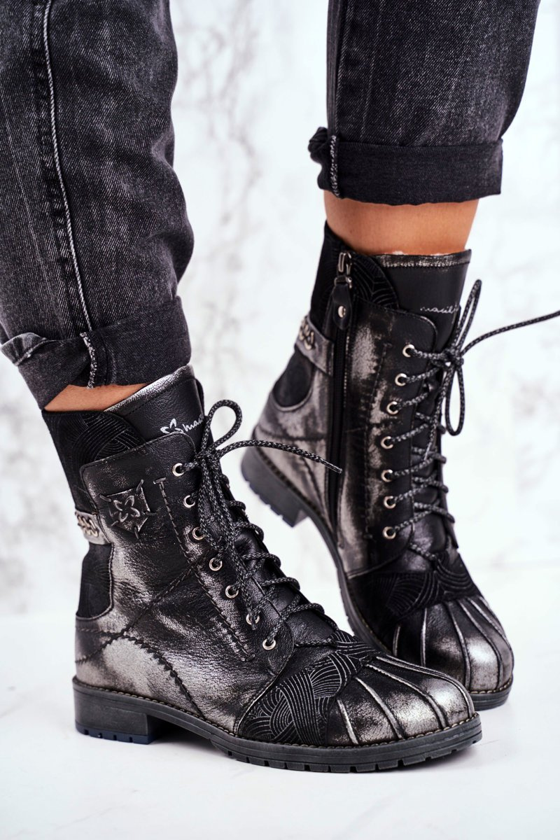 Botki Damskie Skórzane Ocieplane Maciejka Czarne 03961-01