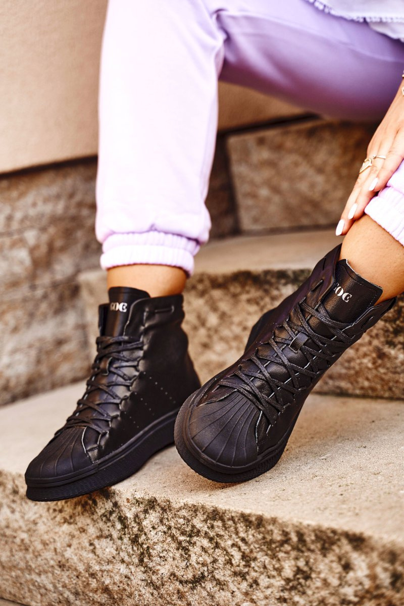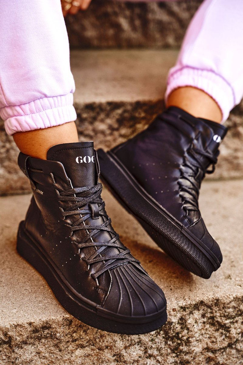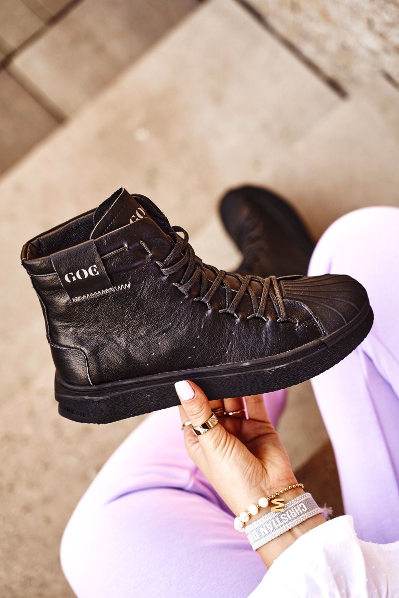 Damskie Sportowe Skórzane Obuwie GOE Czarne GG2N3050