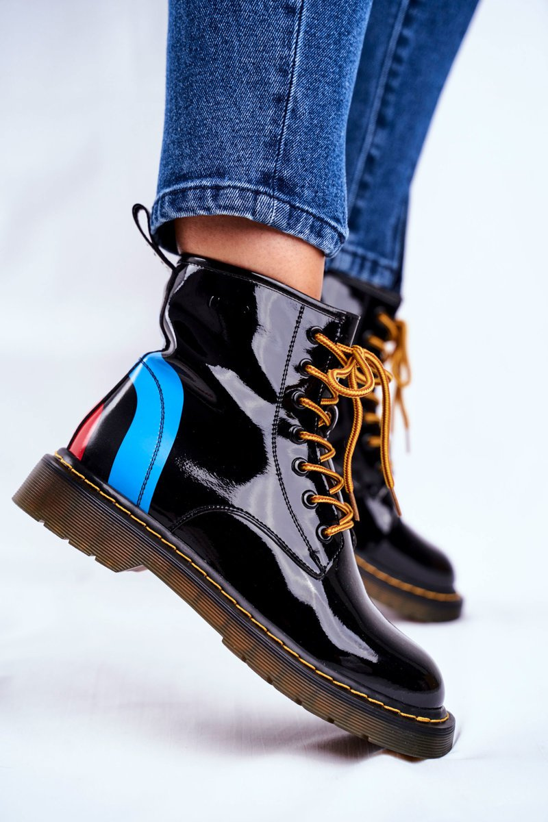 Trapery stały się nieodłącznym elementem jesienno-zimowych stylizacji. Są bardzo wygodne i zgodne z najnowszymi trendami! Trapery zostały wykonane przez renomowaną markę Goe, której logo znajduje się na zawieszce za piętą. Przeszycie na podeszwie oraz sznurówki są w tym samym, żółtym kolorze. Spójrz jak pięknie to wygląda! Zewnętrzna część buta została stworzona z najwyższej jakości, lakierowanej skóry naturalnej z fantazyjnym printem w okolicach pięty. Te cudowne trapery koniecznie muszą znaleźć się w Twojej kolekcji. Przy wyborze rozmiaru prosimy sugerować się tabelą rozmiarów.