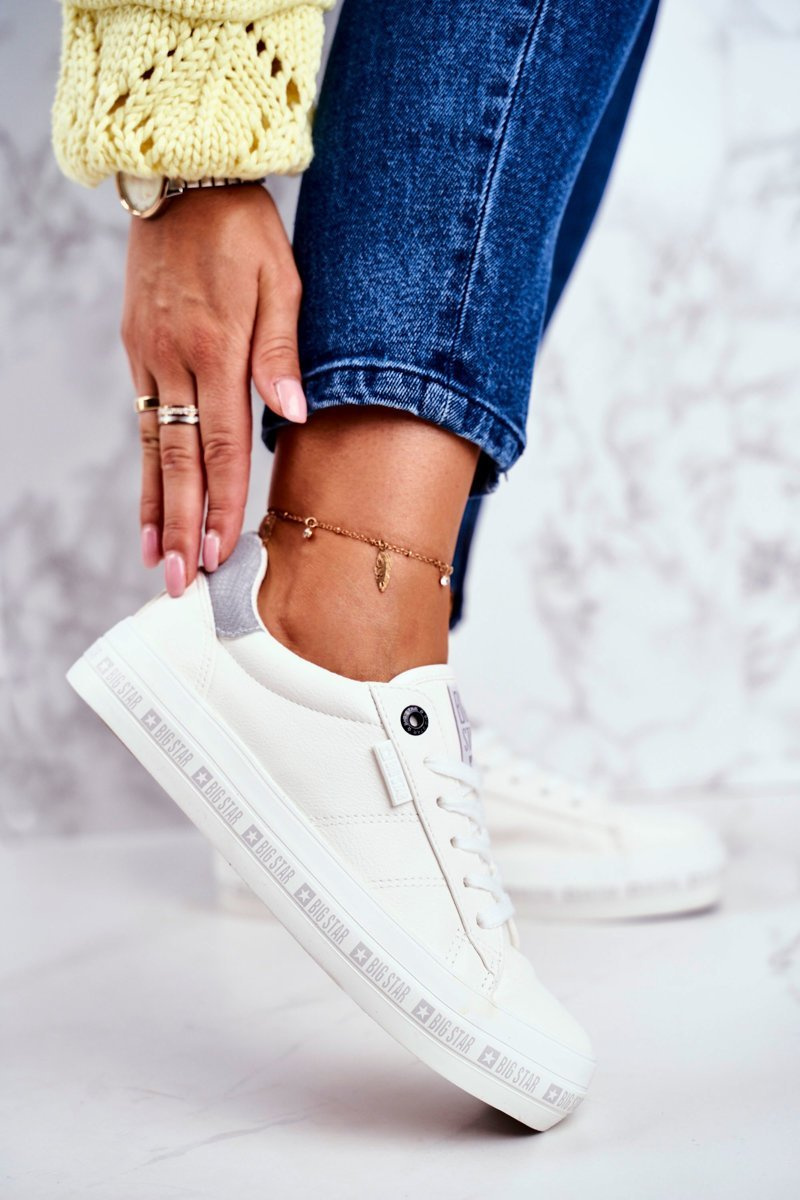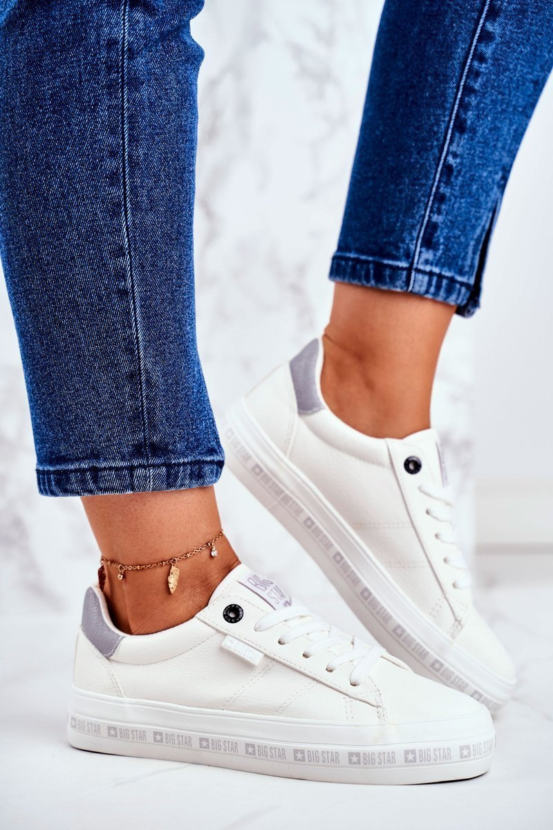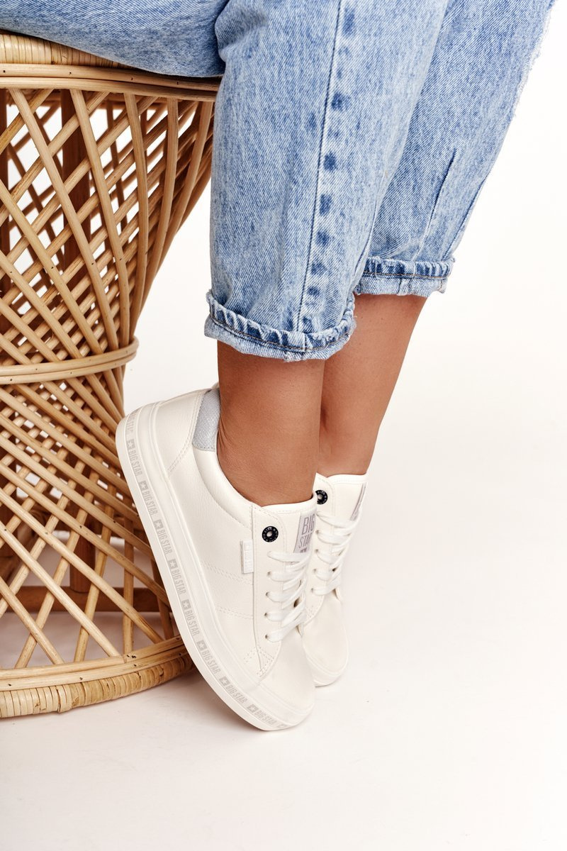 Damskie Skórzane Tenisówki Logowana Podeszwa Big Star GG274194 Białe