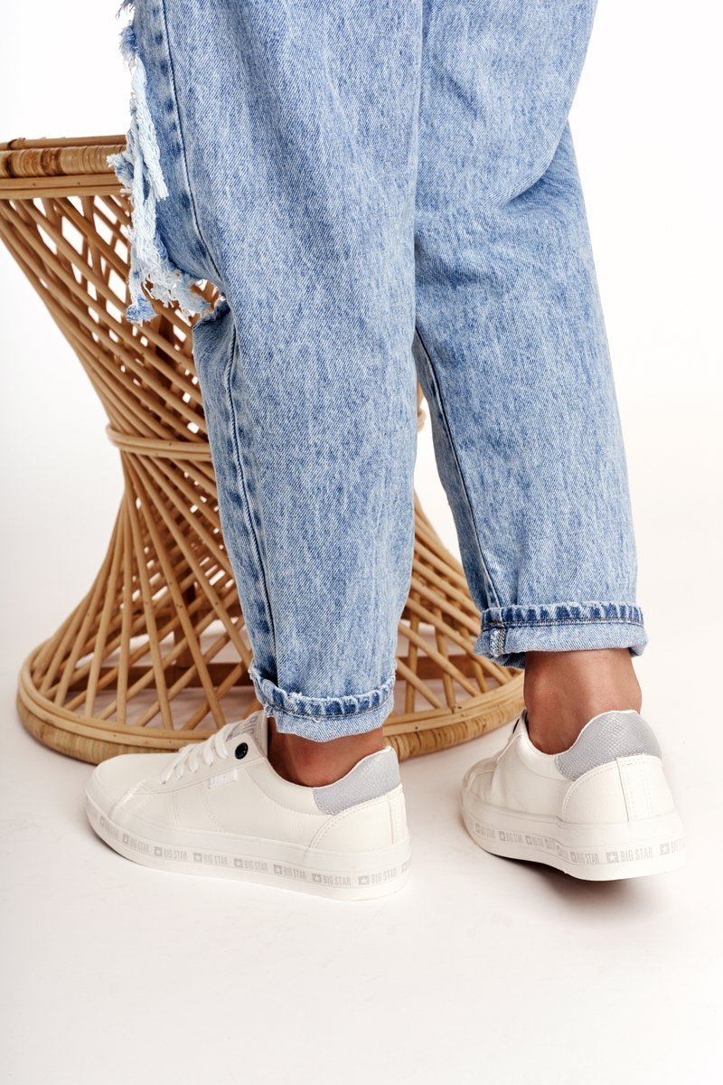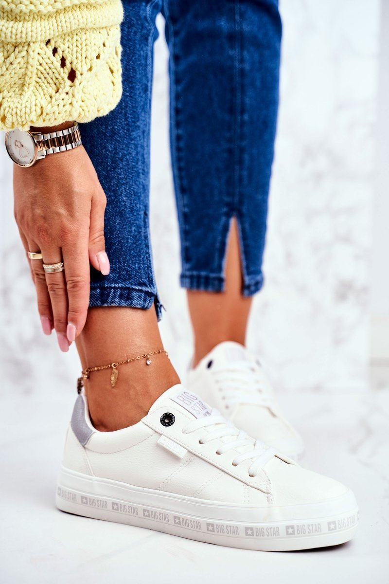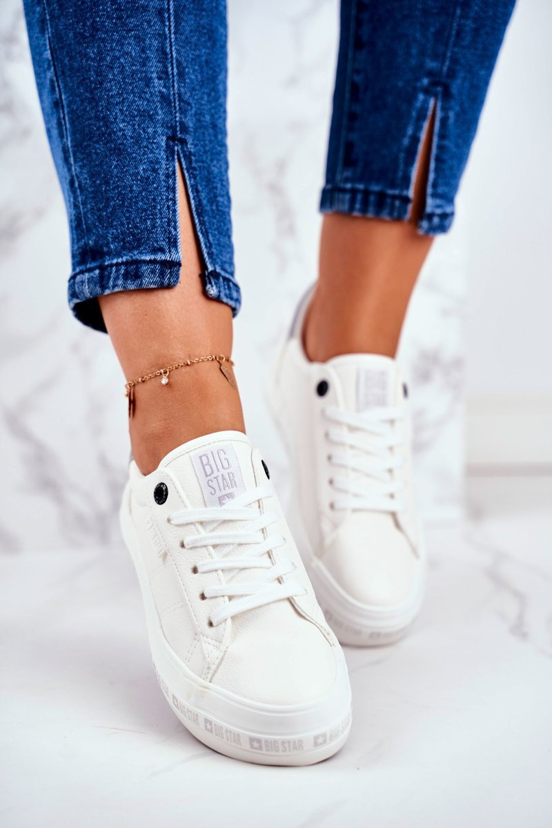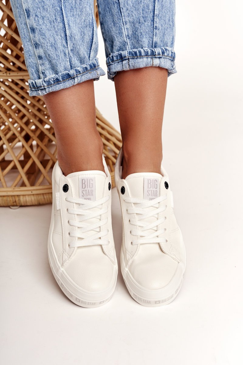 Damskie Skórzane Tenisówki Logowana Podeszwa Big Star GG274194 Białe