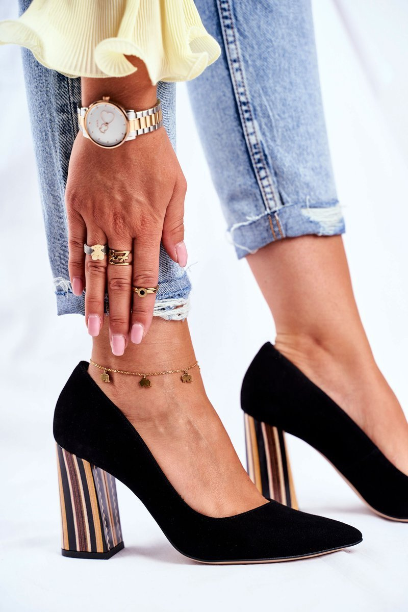 Czółenka Damskie Visconi Zamszowe Czarne 7417302/200