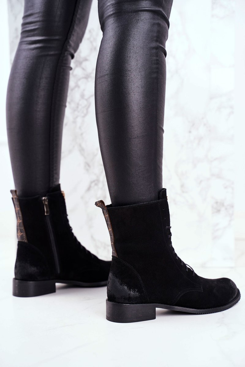 Botki Damskie Skórzane Nubuk Czarne Nicole 2593