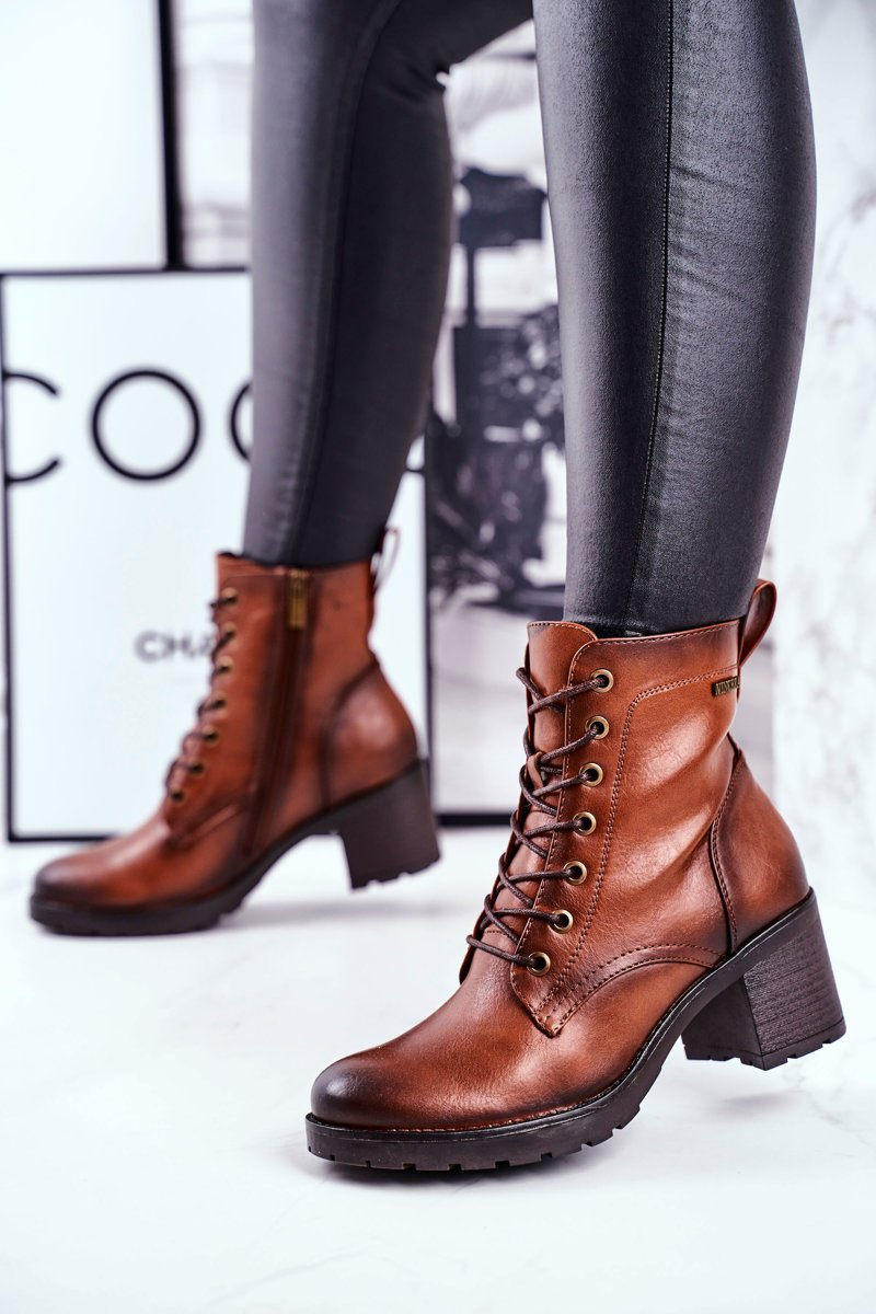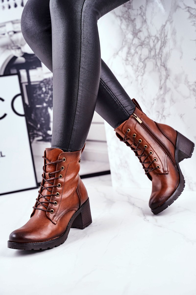 Botki Damskie Na Słupku Ocieplane Brązowe Fiber