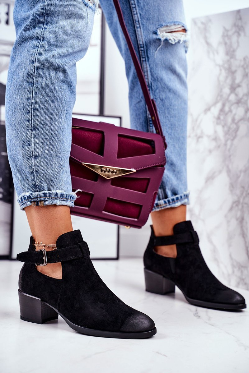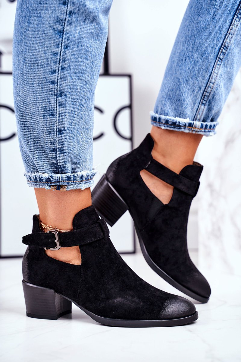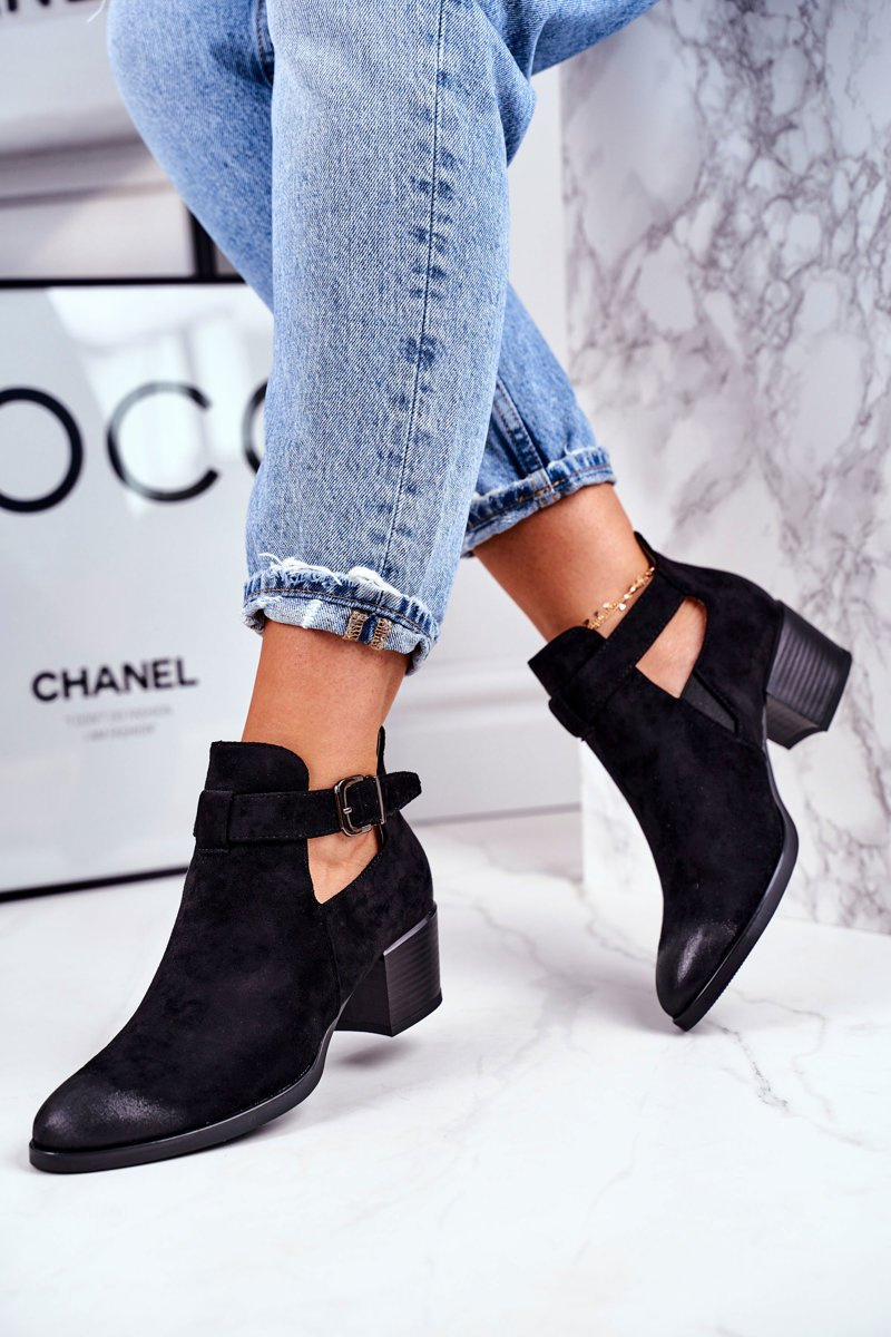 Botki Damskie Na Obcasie Z Wycięciami Czarne Sicily