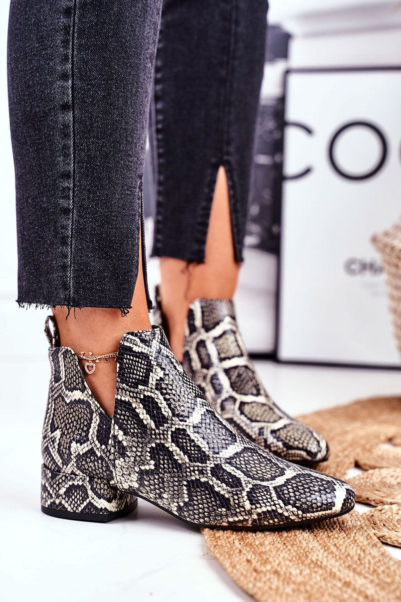 Botki Damskie Z Wycięciami Skórzane Wężowe Visconi 2625804