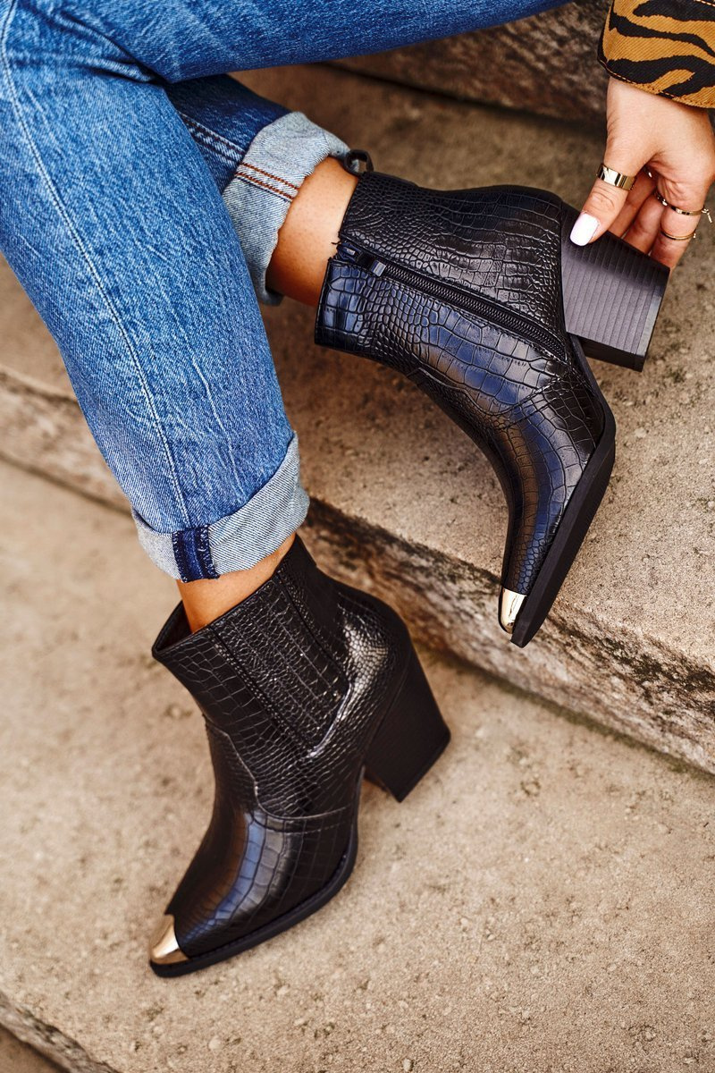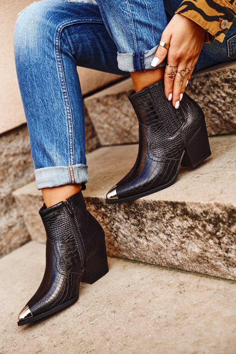 Botki Damskie Na Słupku Kowbojki Czarne Atticus