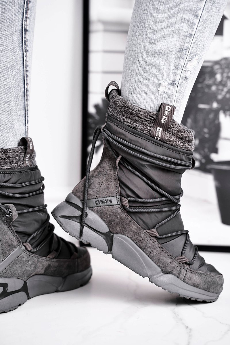 Szukasz czegoś ciepłego i wygodnego na chłodne dni? Niczego lepszego na pewno nie znajdziesz! Najnowsza propozycja śniegowców od firmy Big Star! Buty wewnątrz są niesamowicie miłe w dotyku dzięki zastosowaniu ocieplenia w postaci kożuszka. Zewnętrzna część buta została wykonana z materiału tekstylnego oraz skóry zamszowej. Solidne sznurowanie zapewni idealne dopasowanie się buta do nogi. W tych śniegowcach żadna pogoda nie będzie Ci straszna! Przy wyborze rozmiaru prosimy kierować tabelą rozmiarów.