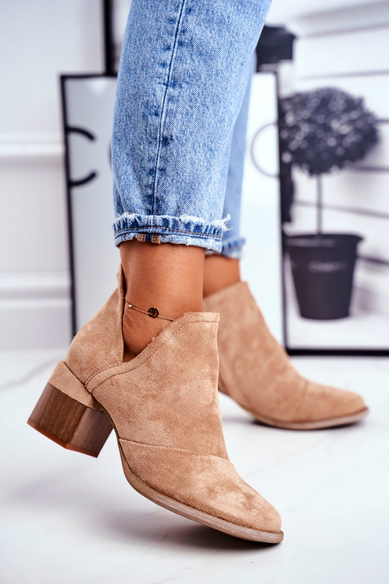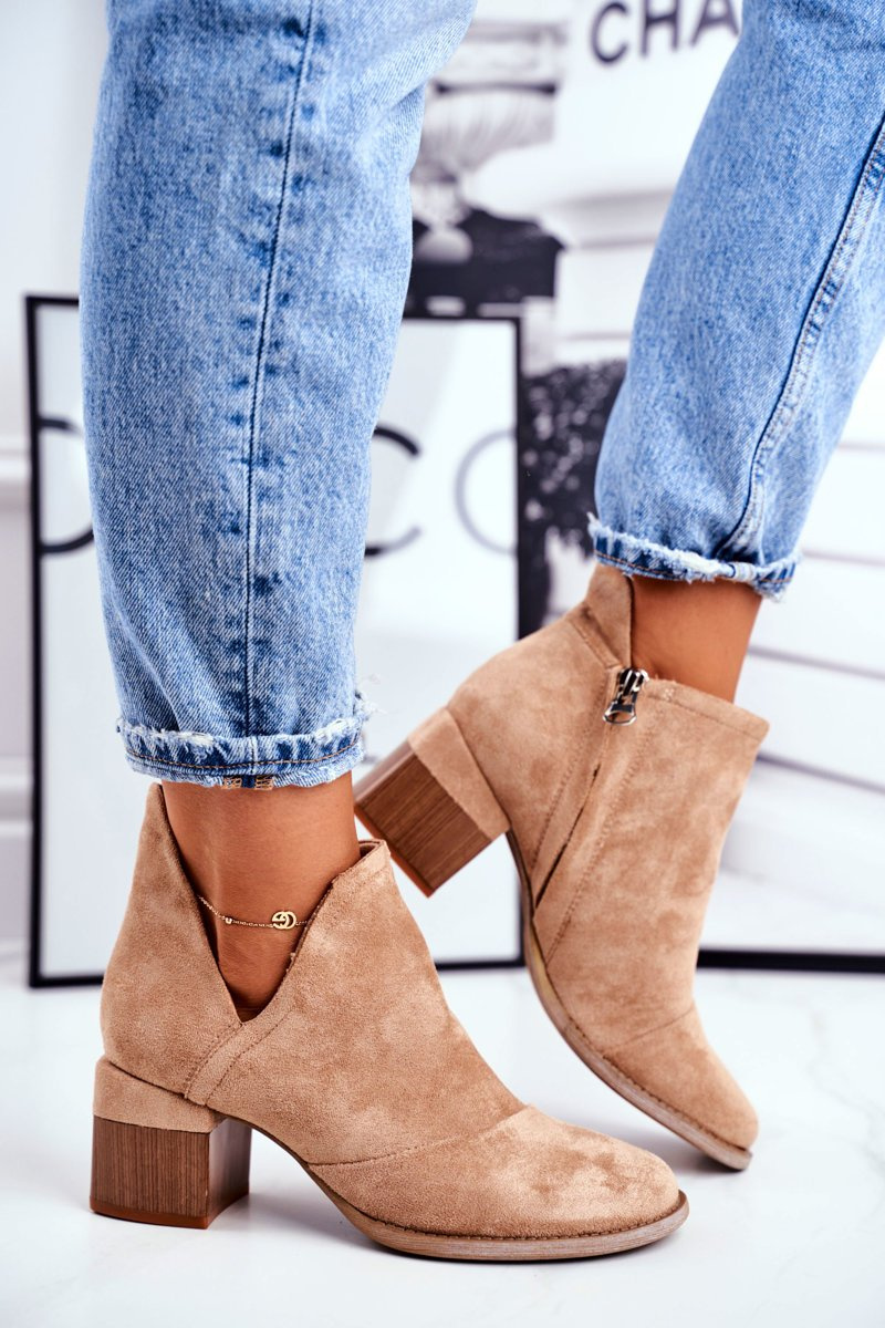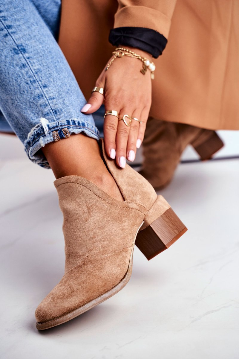 Damskie Botki Na Słupku Wycięte Khaki Mini Meliori