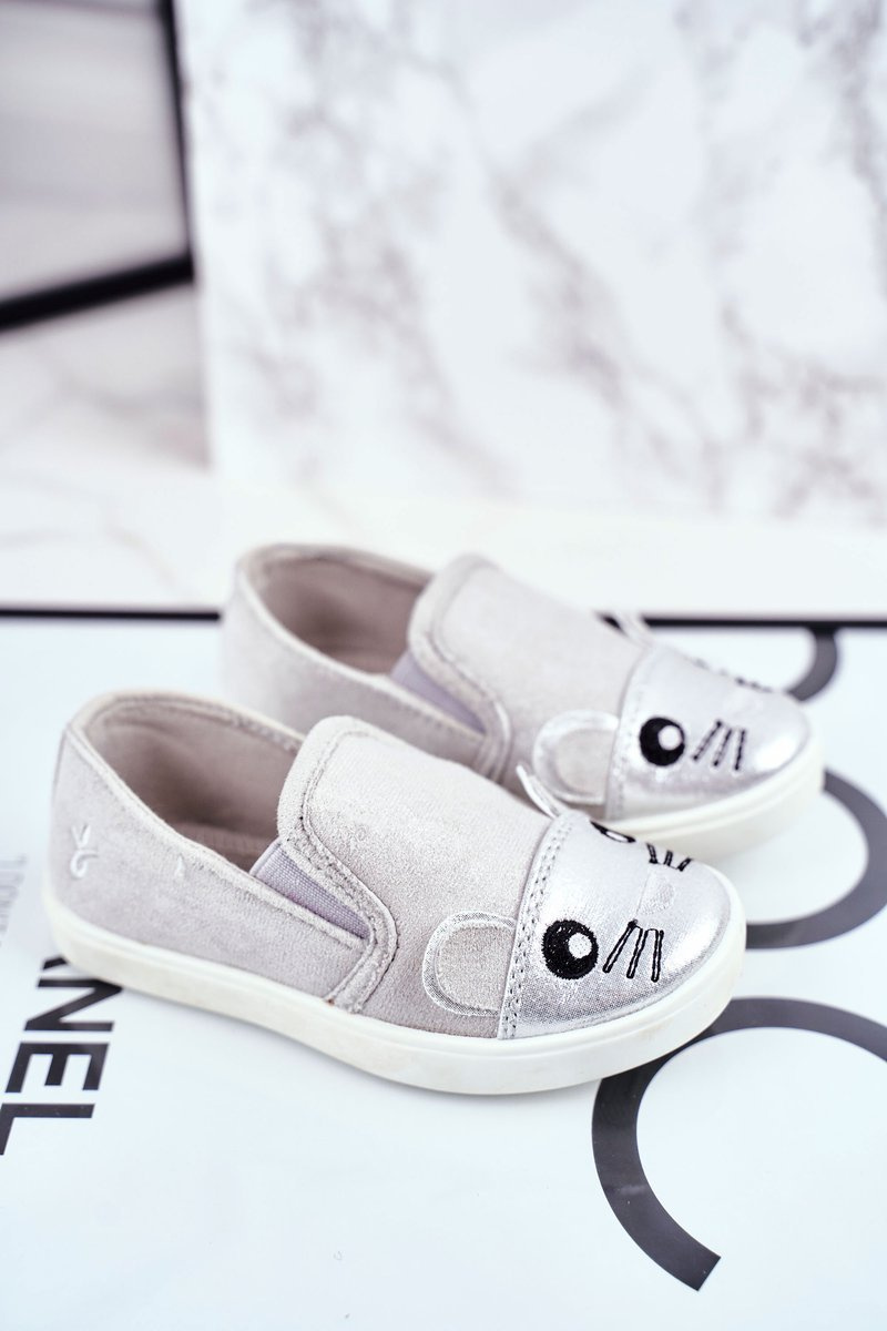 Trampki Dziecięce Wsuwane Z Myszką Jasno Szare Candys