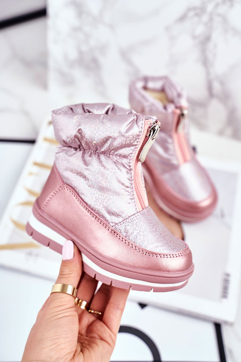 Dziecięce Śniegowce Ocieplane Wełną Różowe Bubbles