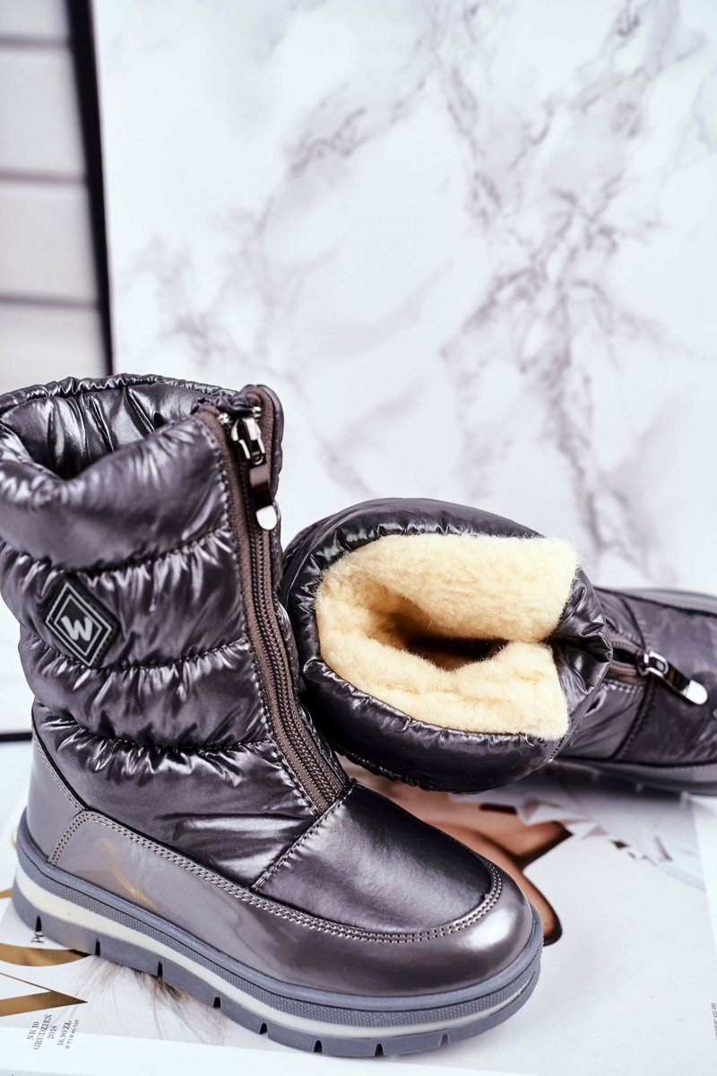 Dziecięce Śniegowce Ocieplane Wełną Ciemno Szare Mumm