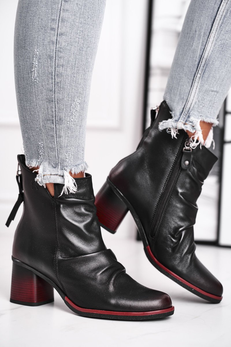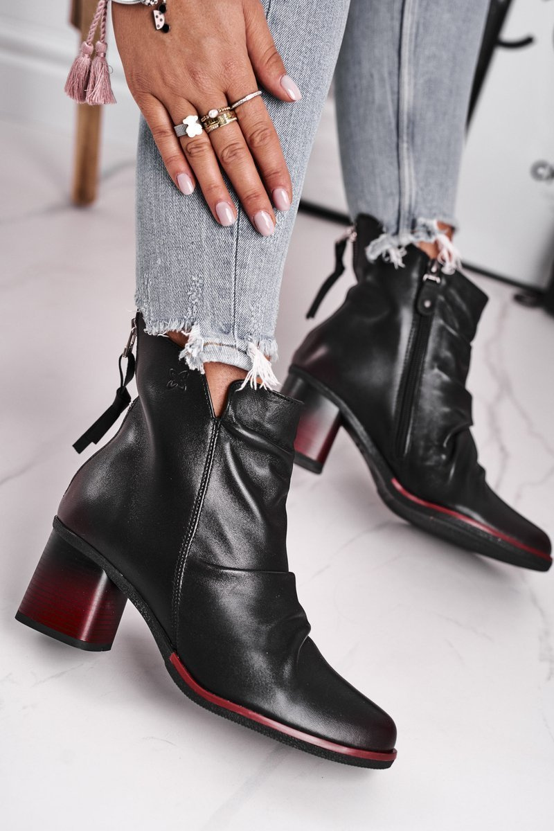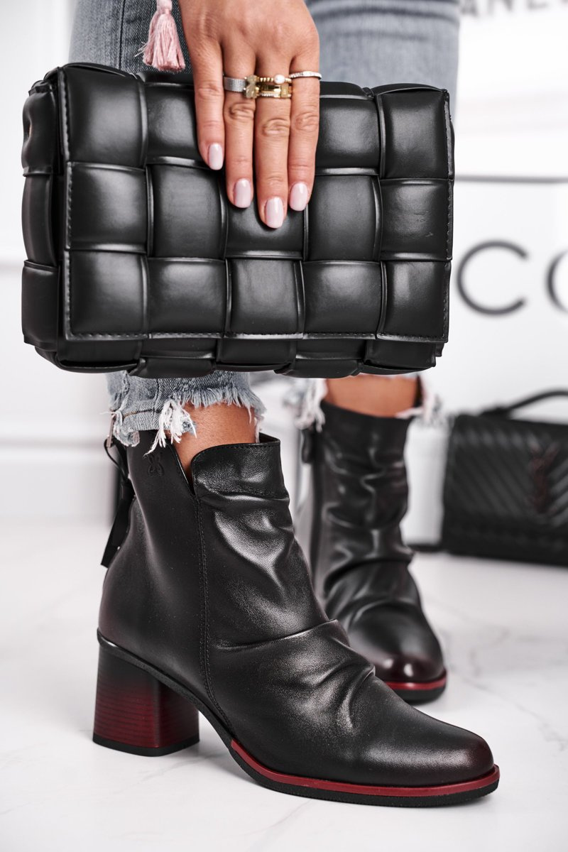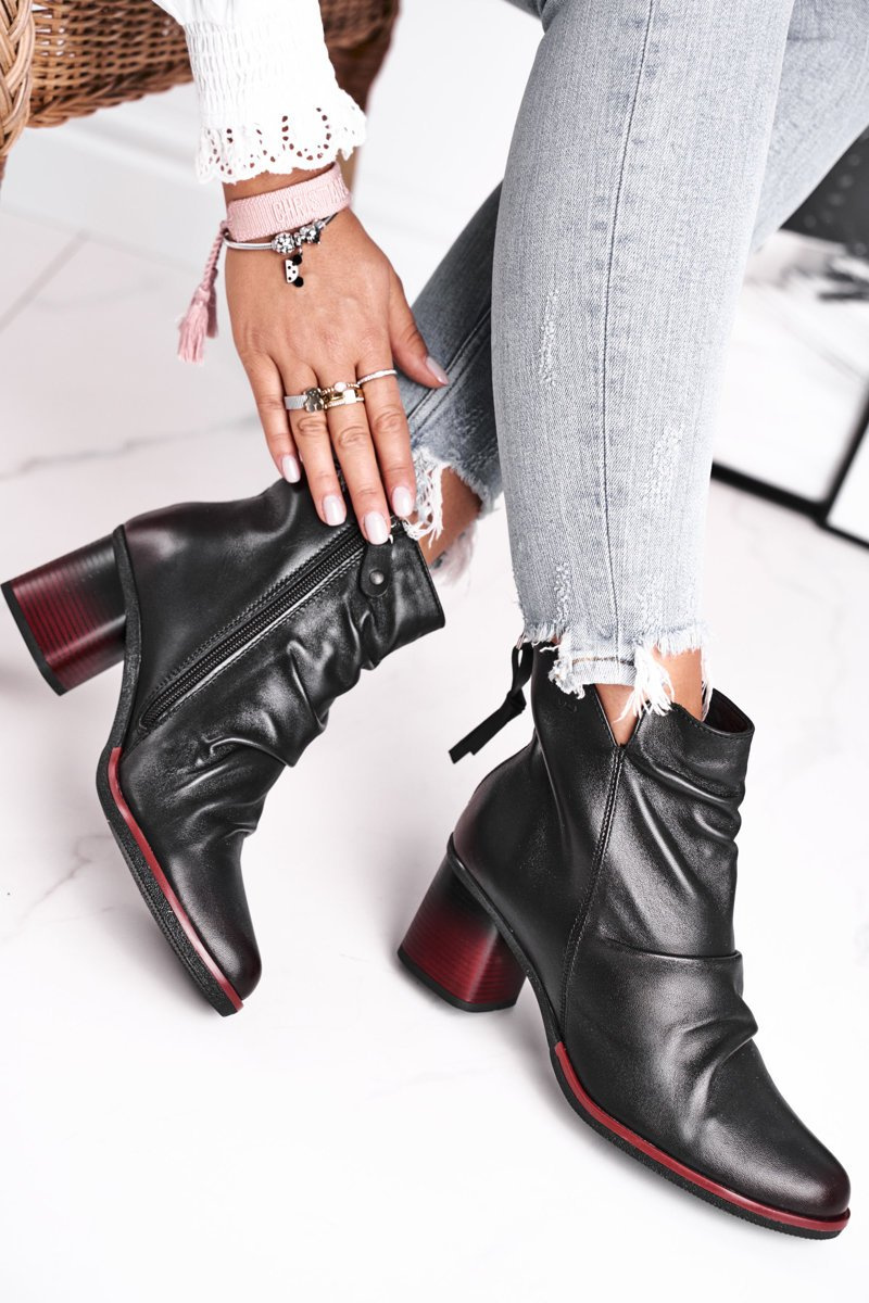 Czarne botki wcale nie muszą być nudne! Botki formy Maciejka są tego idealnym potwierdzeniem. Model w całości wykonany z naturalnej skóry w połączeniu z czerwonym obcasem wygląda niesamowicie! Cholewka delikatnie marszczona z dodatkowym ozdobnym suwakiem. Zachwyć innych swoimi stylizacjami i wyznacz trendy tego sezonu! Zamek błyskawiczny po wewnętrznej stronie ułatwi zakładanie. Przy wyborze rozmiaru prosimy sugerować się tabelą rozmiarów.