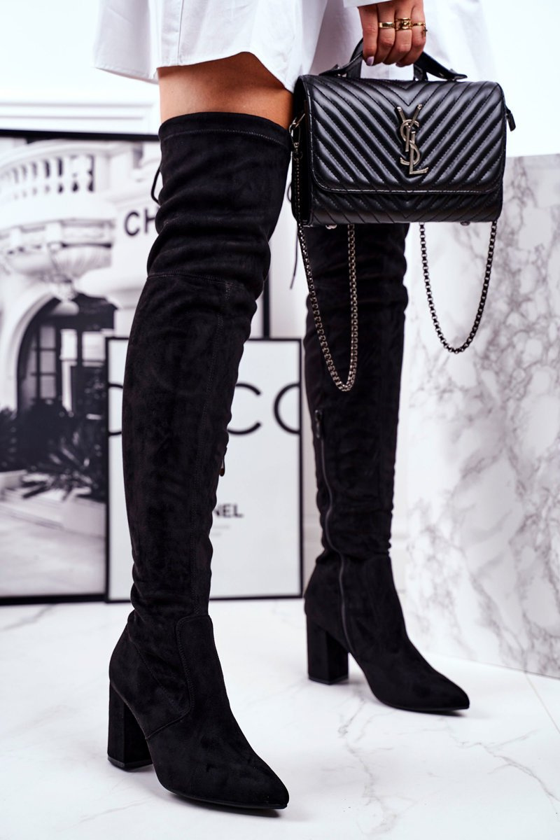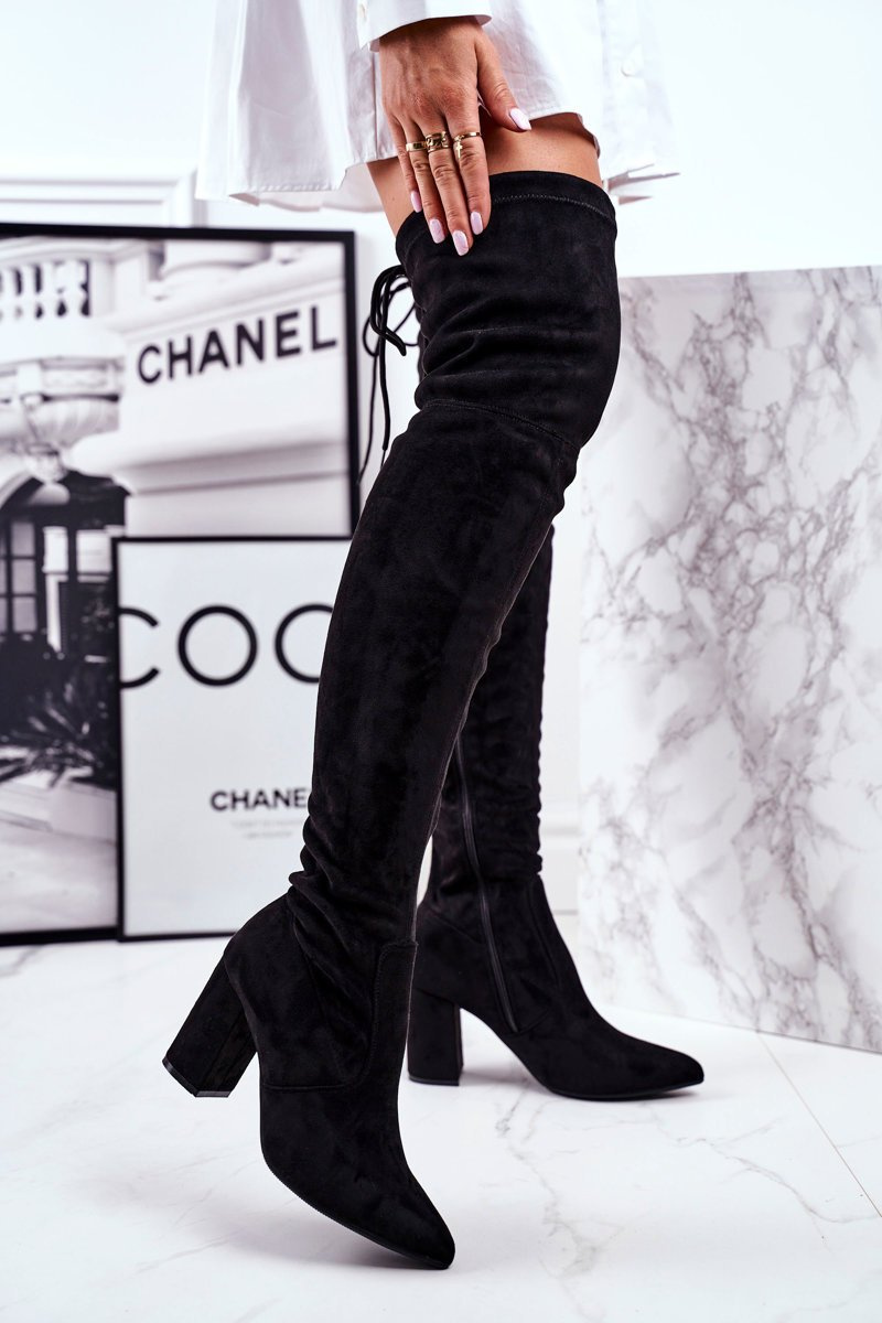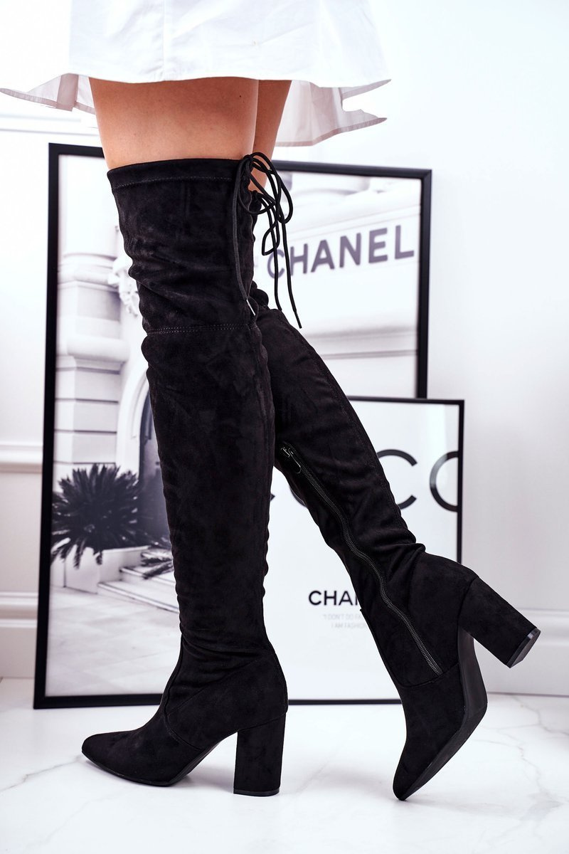 Kozaki Damskie Na Słupku Zamszowe Czarne Milwa