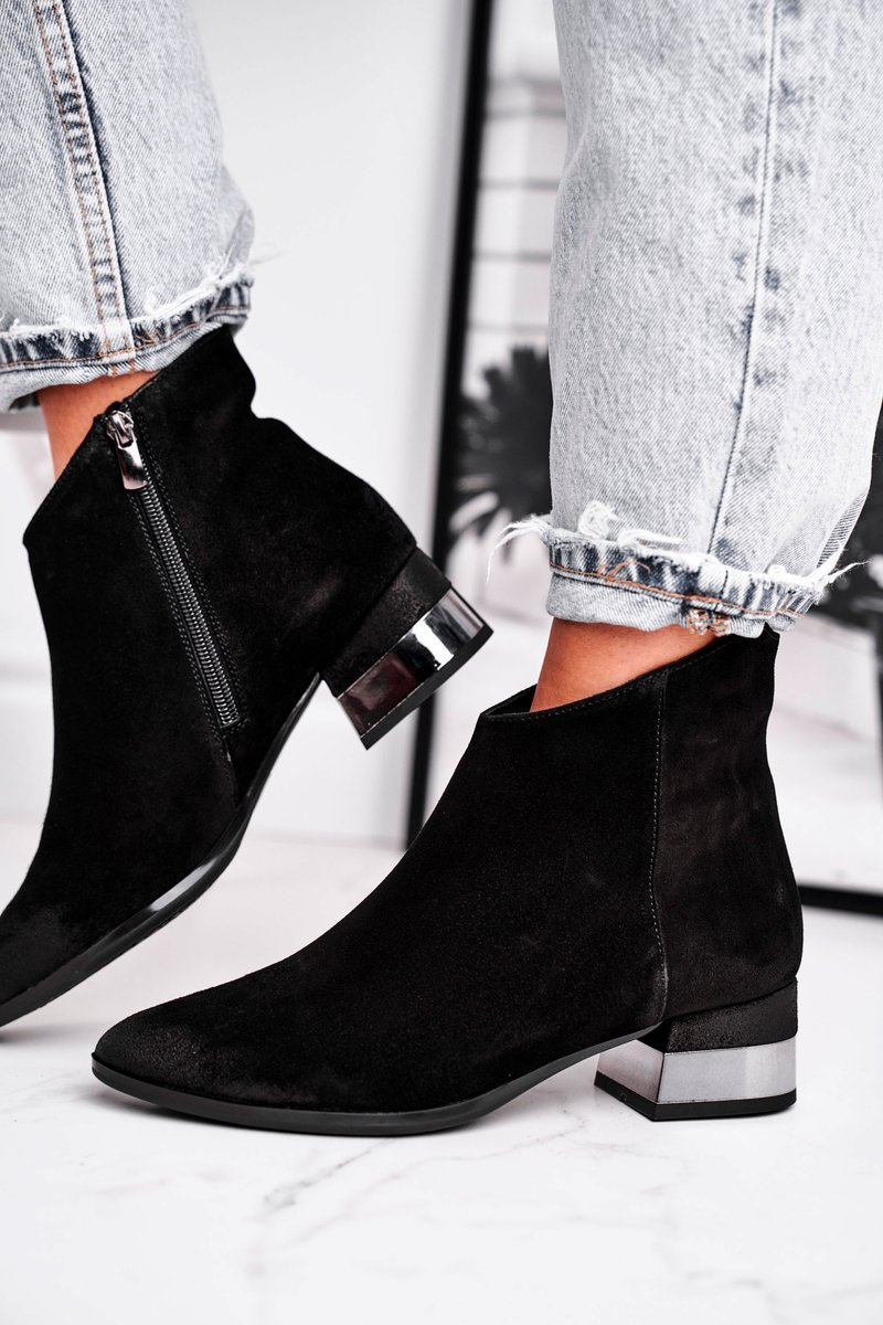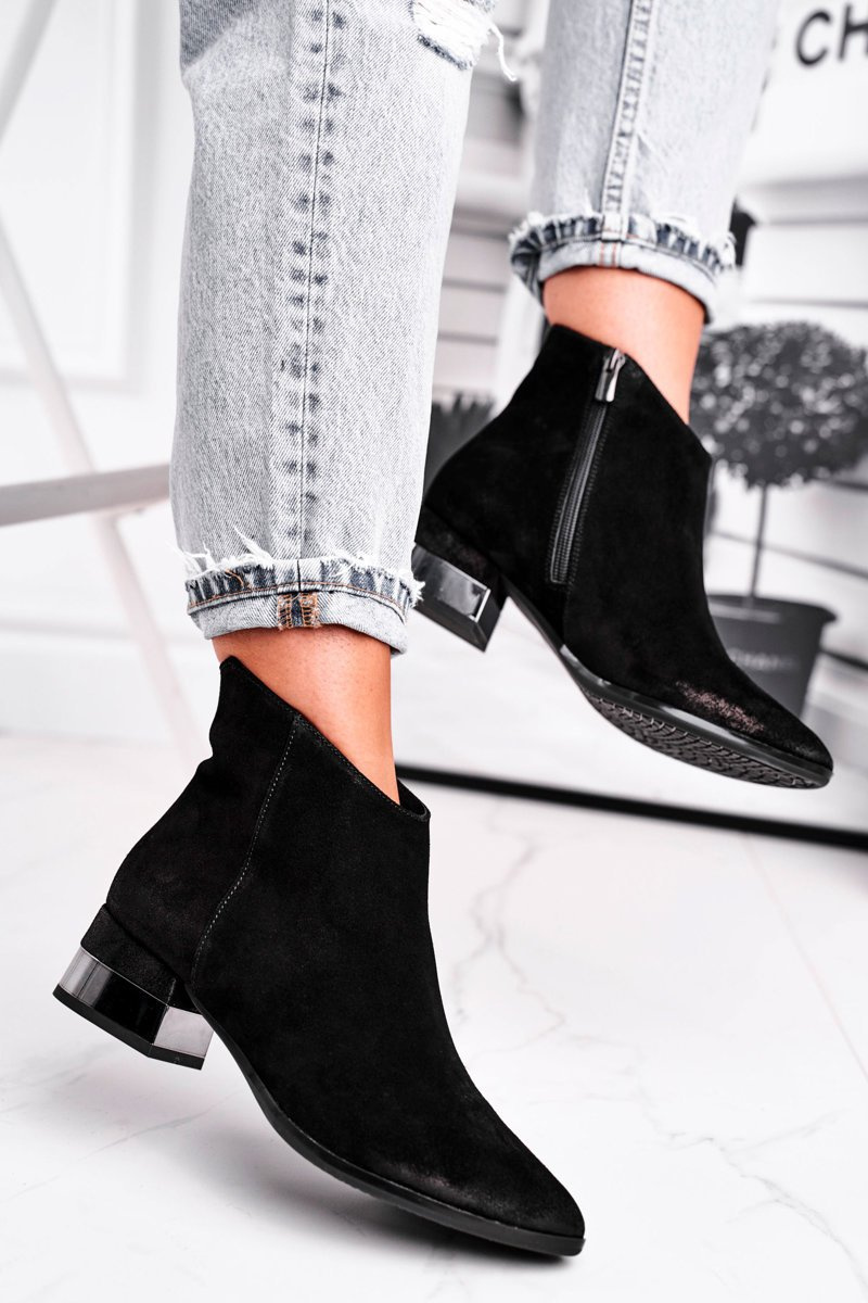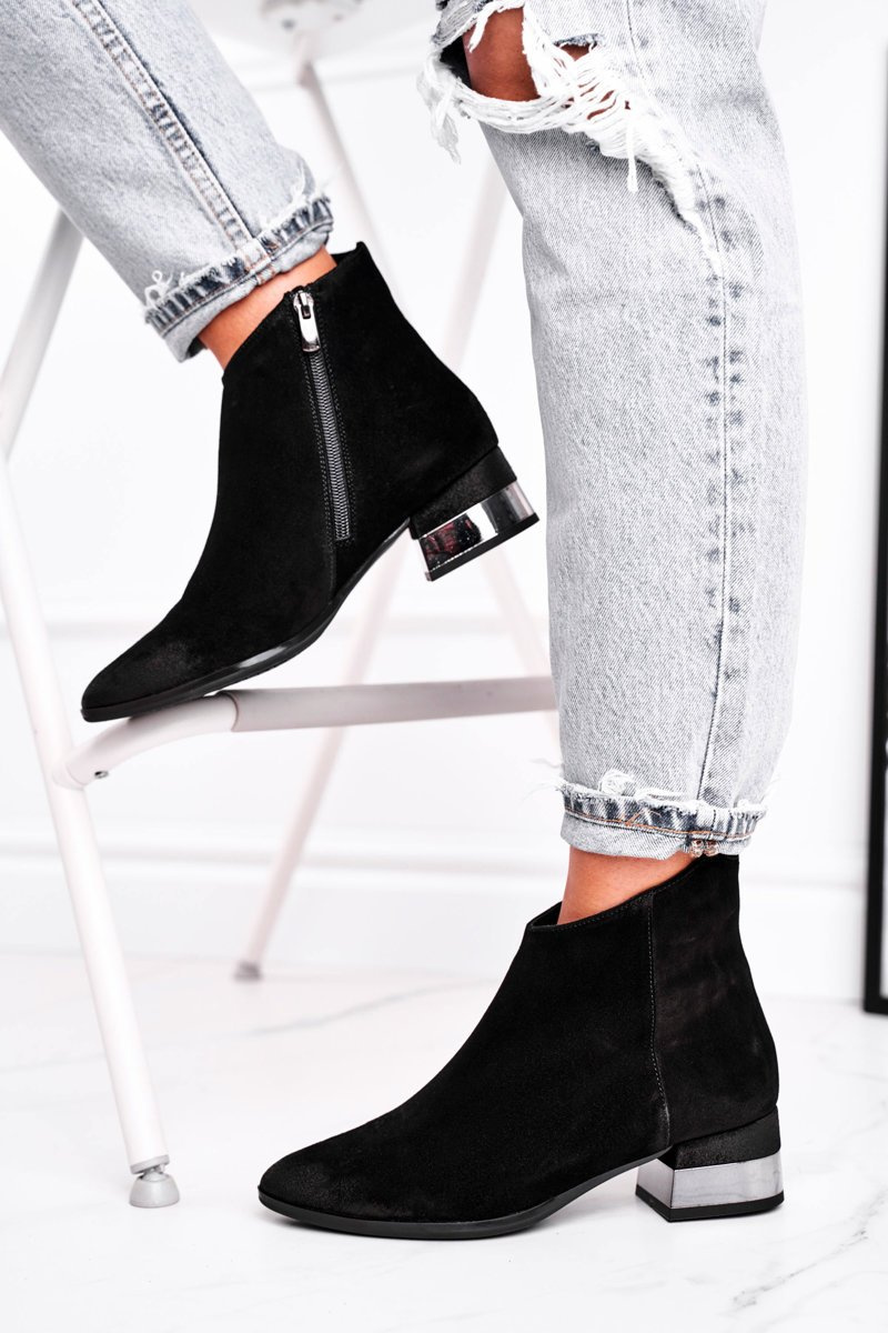 Botki Damskie Skórzane Ocieplane Laura Messi Czarne 2207