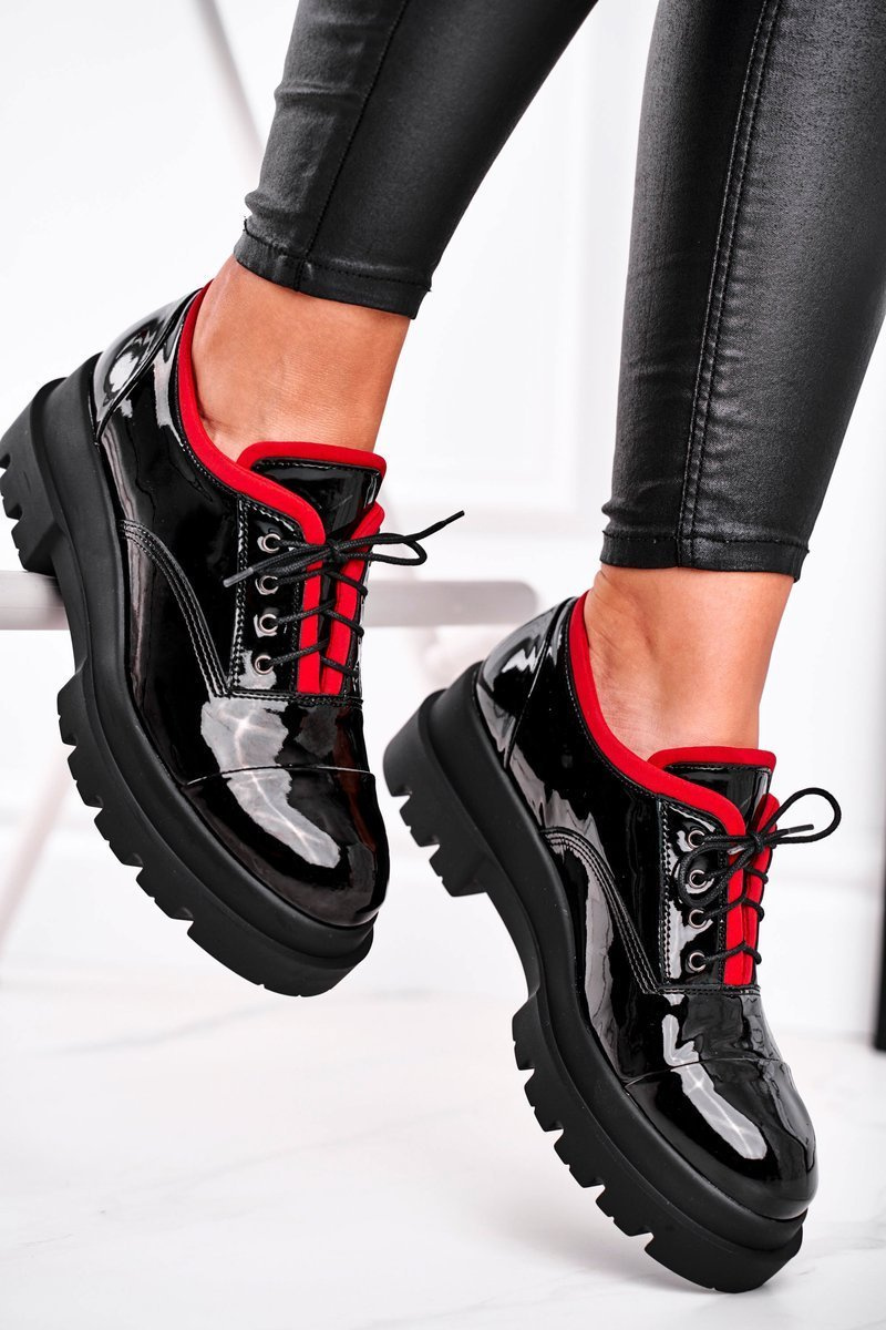 Półbuty w klasycznym kroju wcale nie muszą być nudne. Potwierdzeniem tego stwierdzenia są te wspaniałe buty marki Visconi. Półbuty w całości zostały wykonane z lakierowanej skóry naturalnej. Cholewka wykończona czerwonym materiałem, który idealnie podkreśla ich wyjątkowy styl. Sztywny zapiętek oraz wysoka platforma zadba o idealną stabilizację i komfort podczas chodzenia. Przy wyborze rozmiaru prosimy sugerować się tabelą rozmiarów.